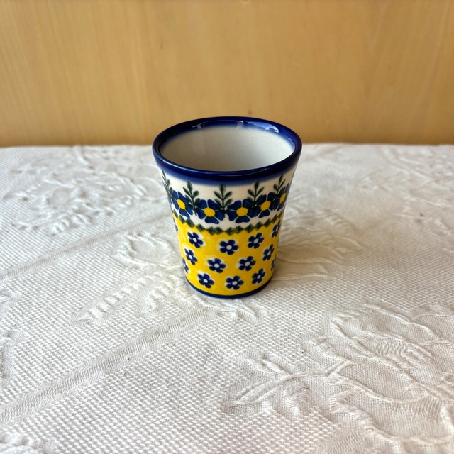 小ぶりの可愛いカップ。寒い日に温めたホットワインを飲むのにぴったりです。日本人としては、日本茶を飲む湯吞みとしてのご利用も馴染み深い使い方かと思います。両手で包める小さなサイズは小さな手の方にもなじみやすく持ちやすいカップとなっています。 白地と鮮やかな黄色、紺色の花柄がとても華やかなこちらの絵柄。ポーリッシュポタリ―らしい素朴な可愛らしさもあり、見るだけで元気をもらえるようなデザインからとても人気がある絵柄になっています。 ○●●○ 高さ:8cm 容量:0.15L(満水時) 製造元:Ceramika Artystyczna VENA(ヴェナ) 生産国:POLAND 品番:V059-U198 オーブン使用OK、レンジ使用OK、食洗機利用OK(直火NG) ※ご購入前にご一読下さい※ ポーランド食器は、昔ながらの手仕事で職人が作っているハンドメイド製品です。プリントとは違い、同じ絵柄でもひとつひとつに絵柄や表情の個体差がございます。絵柄の違い、色の濃度、スタンプの間隔の違いなど、手仕事ならではの個性も味としてお楽しみ下さい。