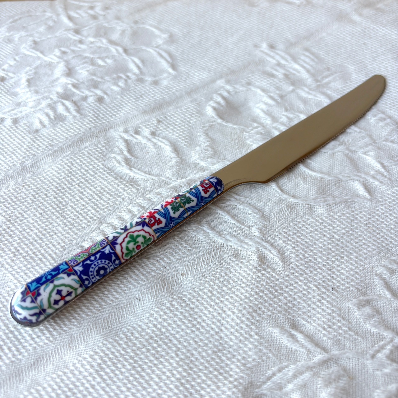 イタリアの高品質なカトラリーブランド「NEVA」のディナーナイフ。花柄やタイル柄など、選ぶのが楽しくなります。肉料理だけでなく、野菜や魚を切り分ける時にも大活躍。ディナースプーンやフォークと合わせて、プレゼントにもおすすめです。