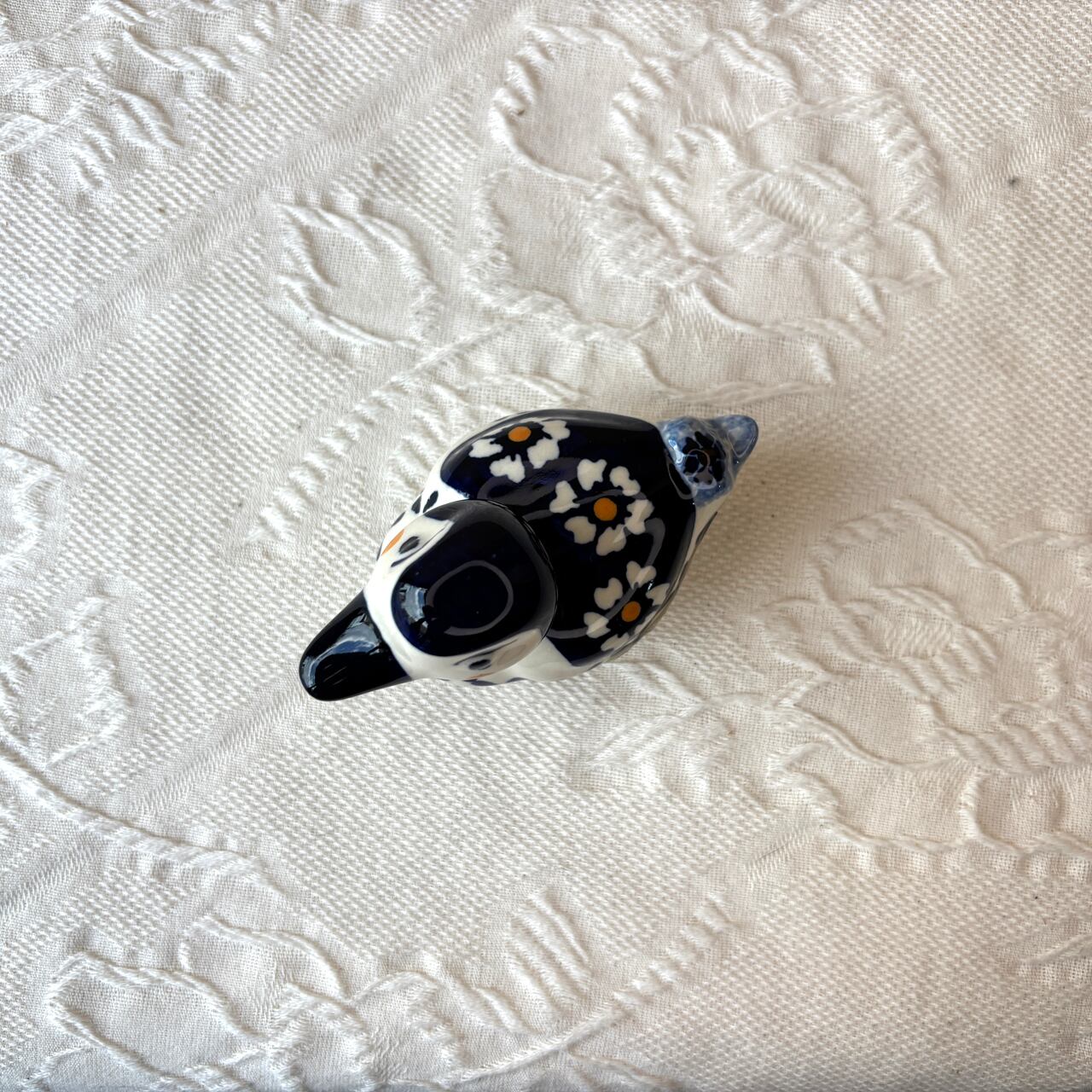 紺色を基調にカモミールが描かれた絵柄です。白いカモミールの真ん中にスタンプされている黄色もアクセントになっていて、とても愛らしいデザインになっています。ポーランド食器を知らない方でも、この柄は知っているという方も多いとても有名な柄です。