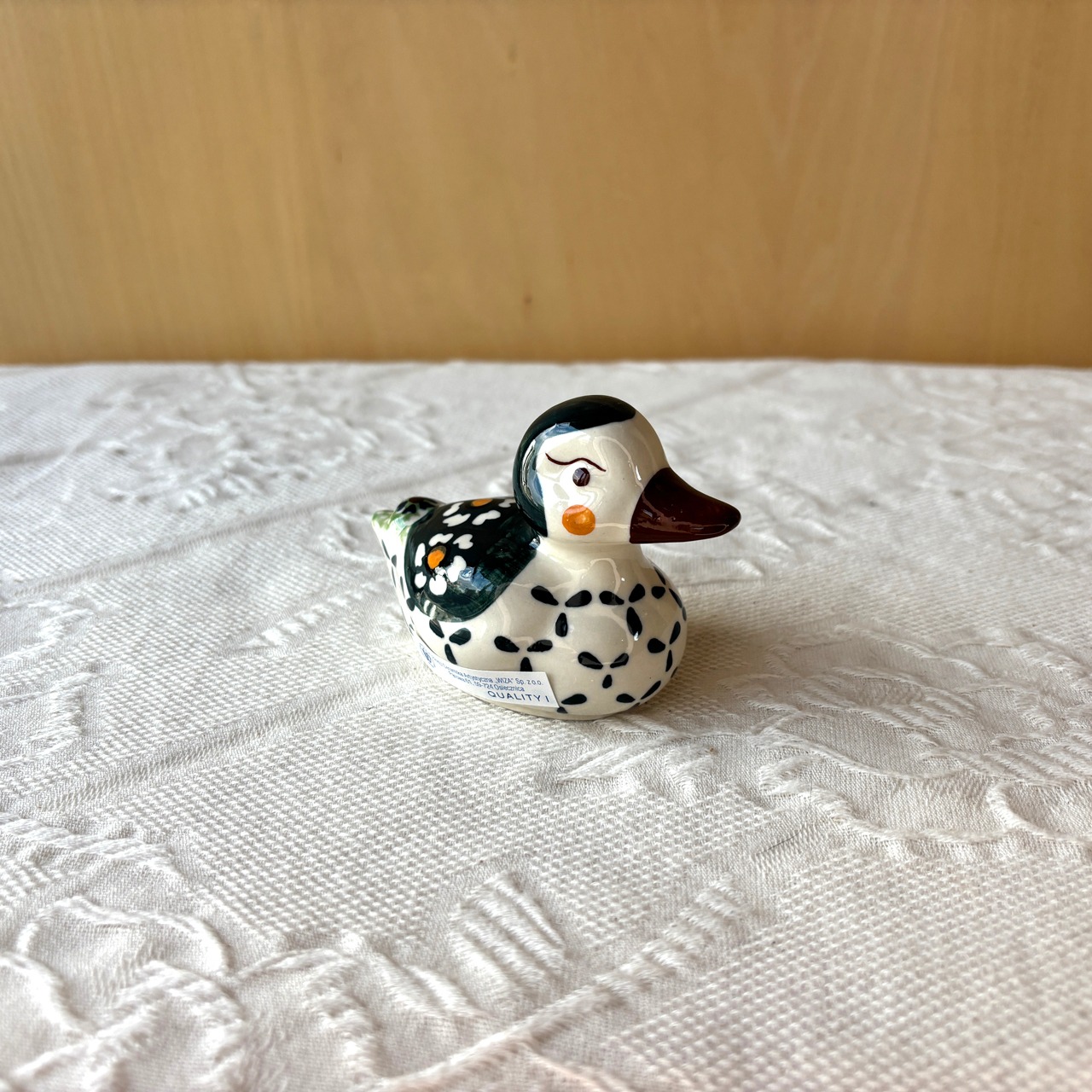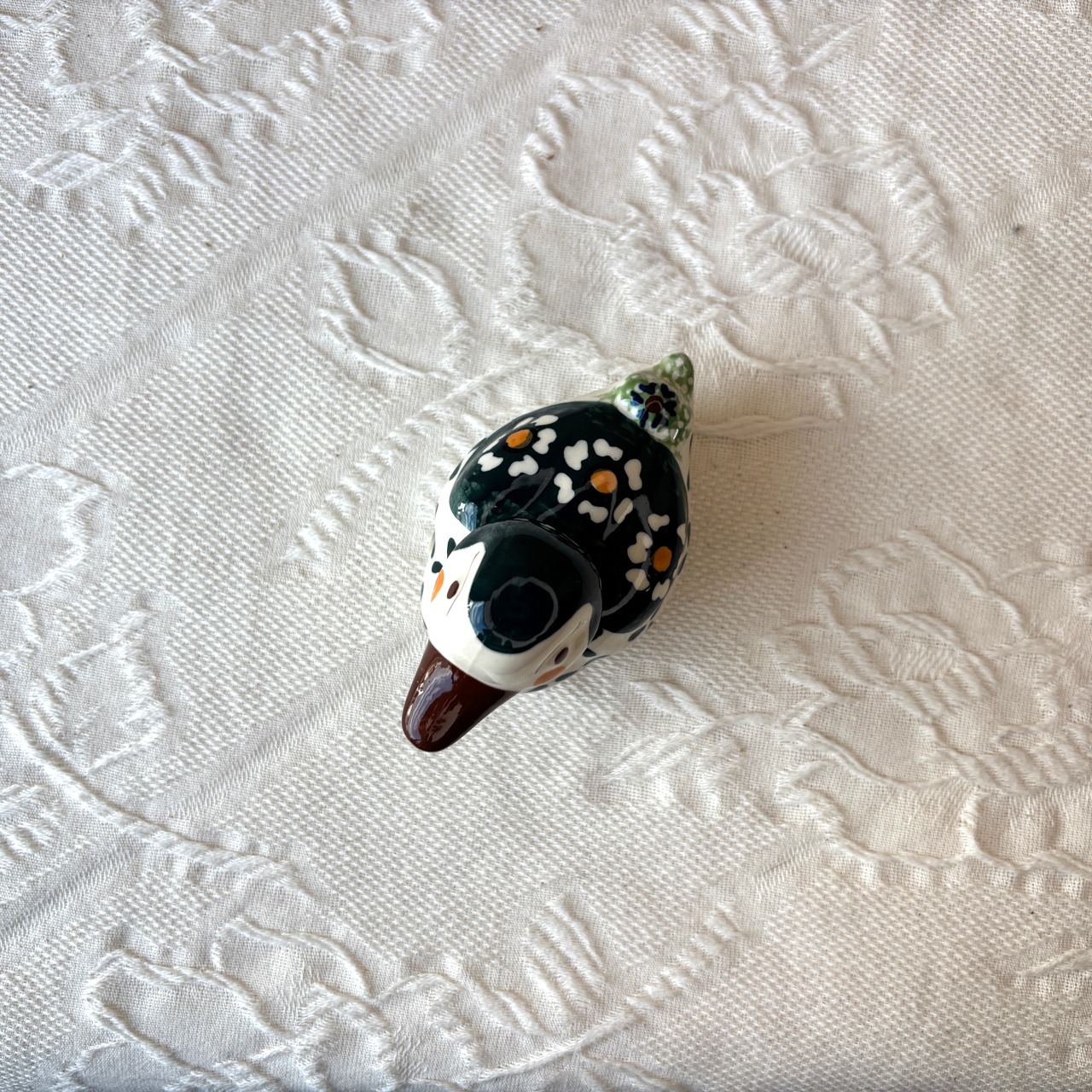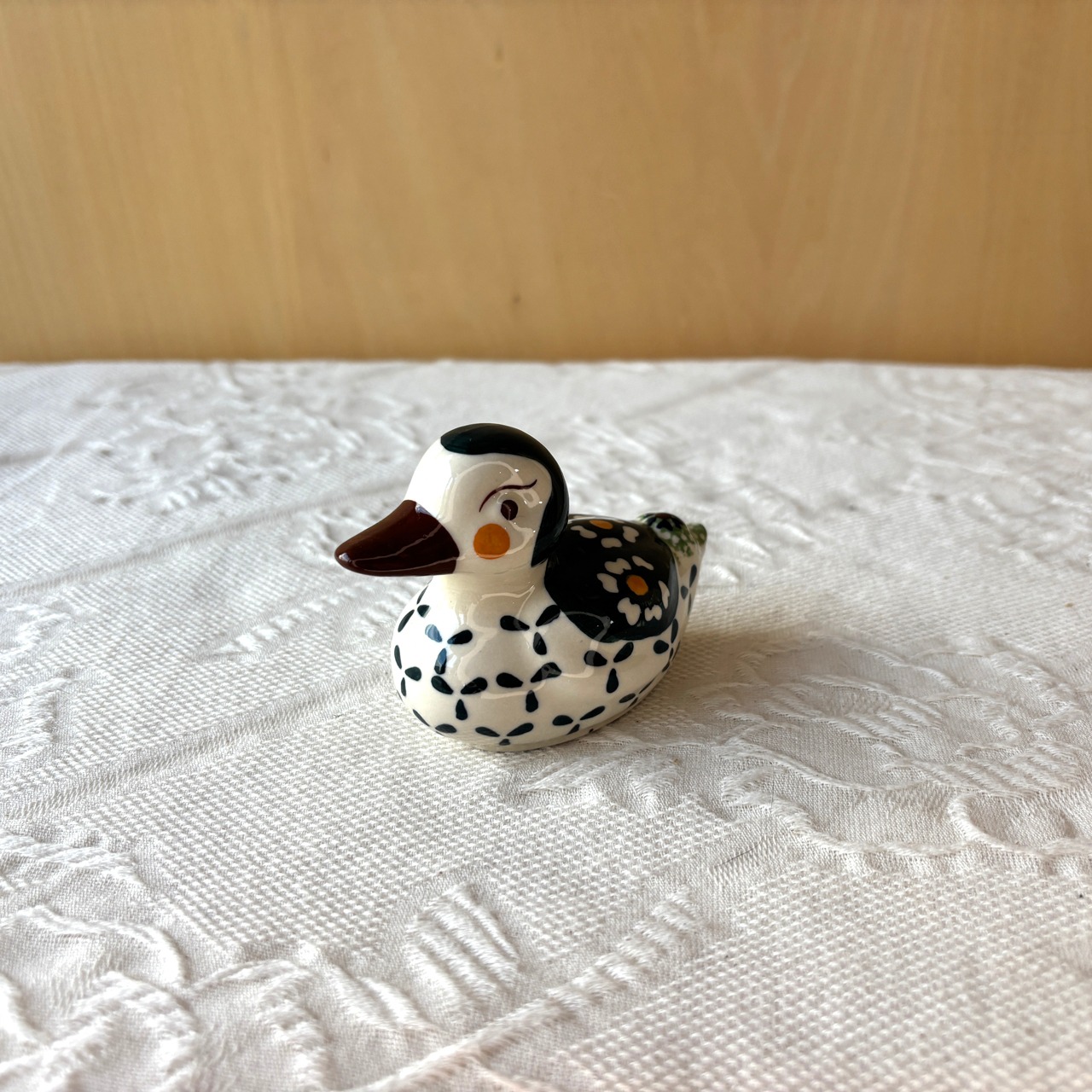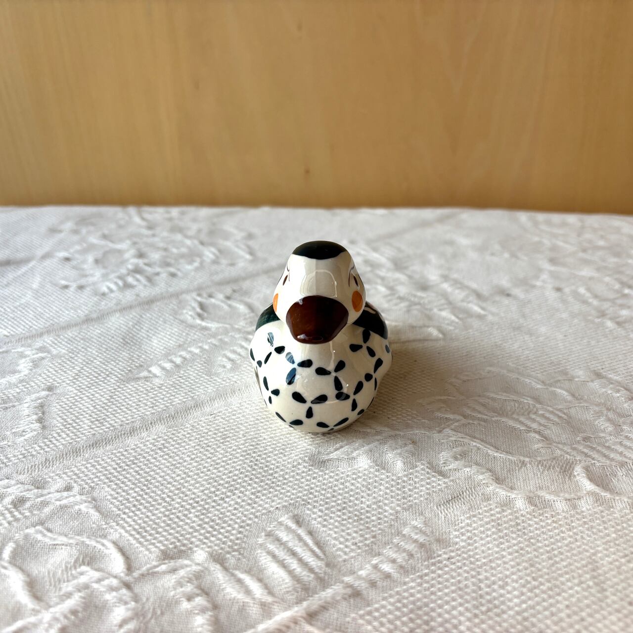 ぽてっとしたフォルム、ひょうきんな表情がなんとも愛らしいあひるの置物です。玄関や卓上に置いて置くだけでも、ふと目が合った時にふわりと楽しい気分になります。ペーパーナプキンなどを飛ばないようにするペーパーウェイトなどに使っても可愛いです。