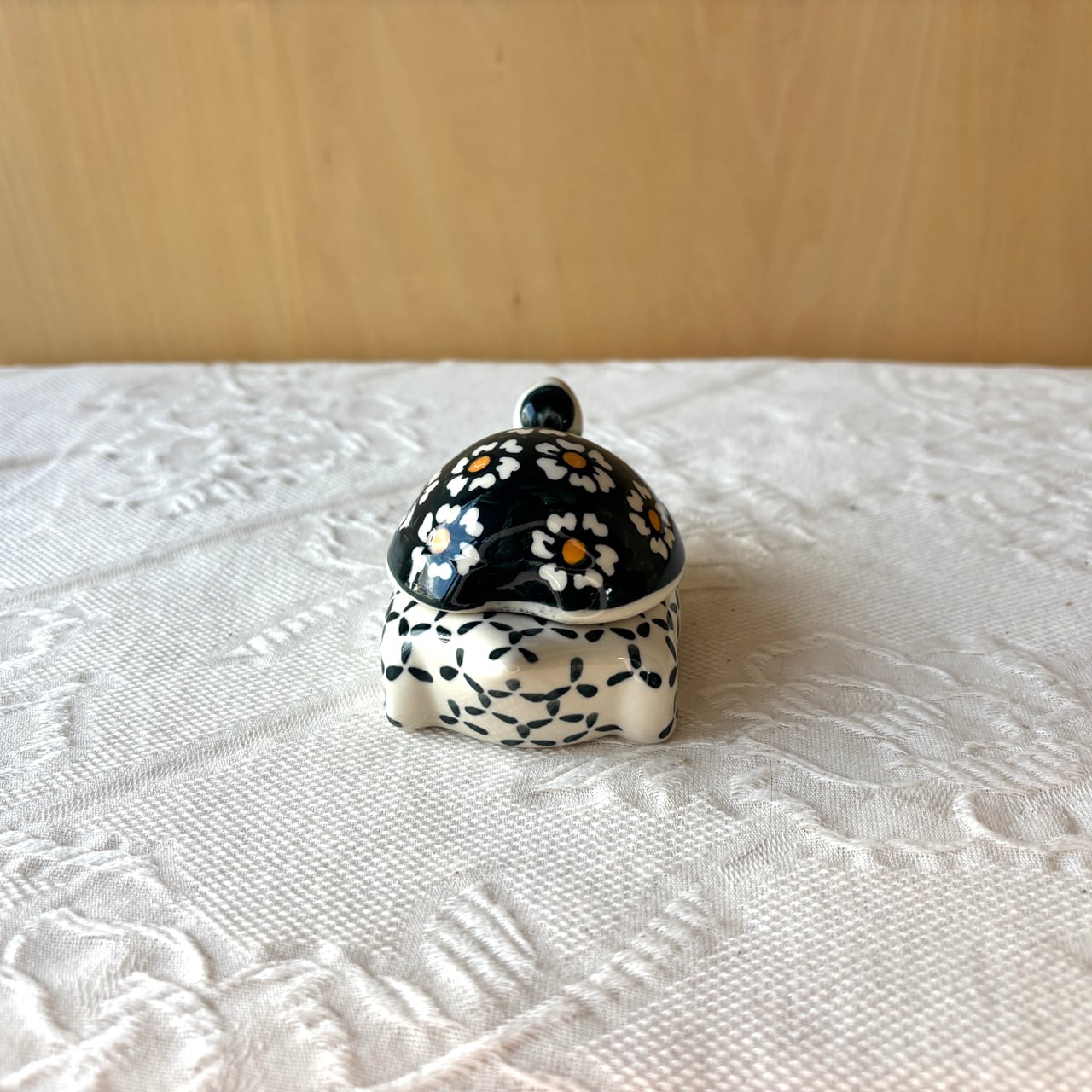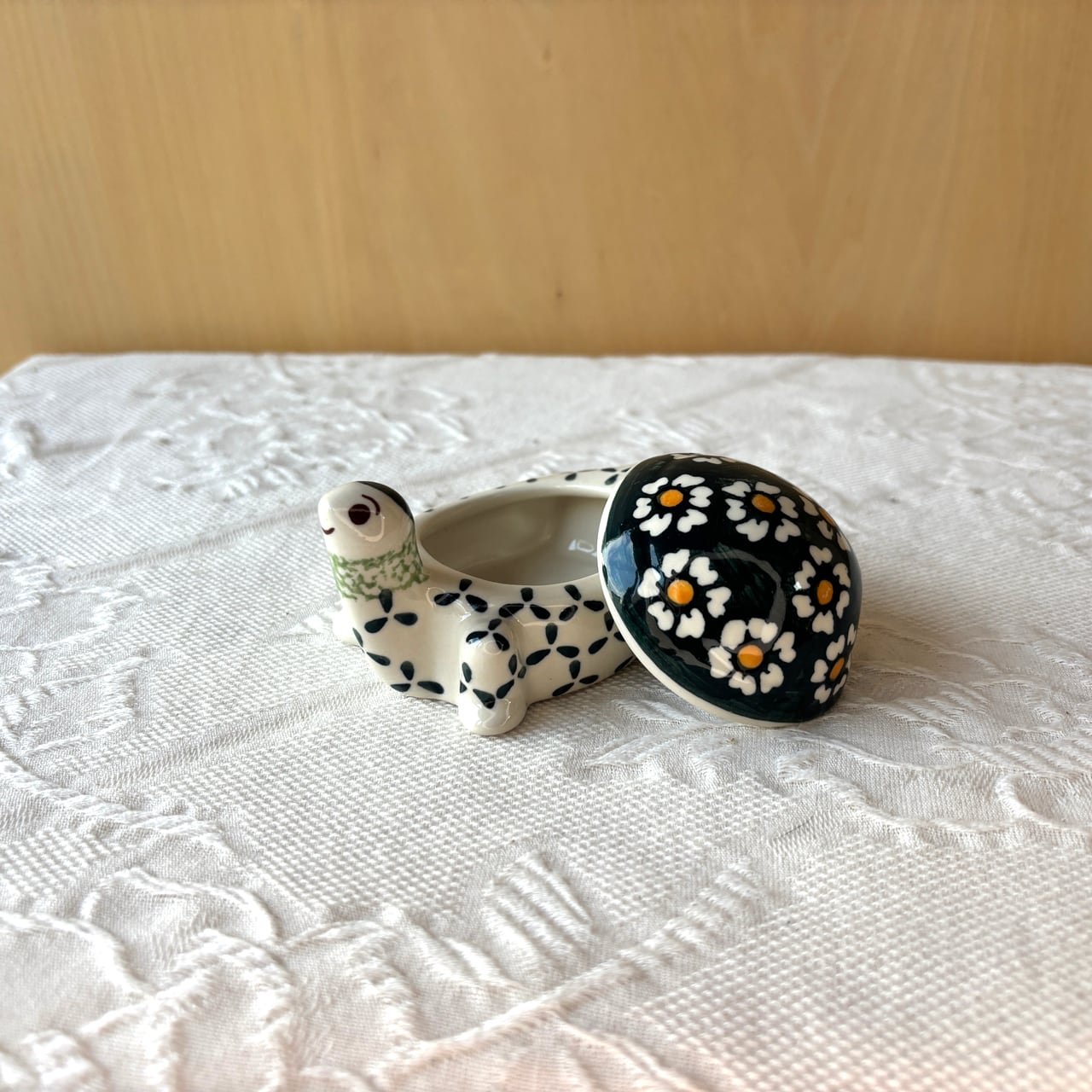 実は甲羅部分がフタになっていて、小物入れとして利用できます。ポーランドでも数少ない「縁起の良い」動物なのだとか。ひょうきんなお顔がなんとも愛らしい表情でとても人気の一品です。ネットストアではお顔を選ぶことができませんが、どの子が来ても愛着がわくこと間違いなしなので、是非そういった特徴もお楽しみください。