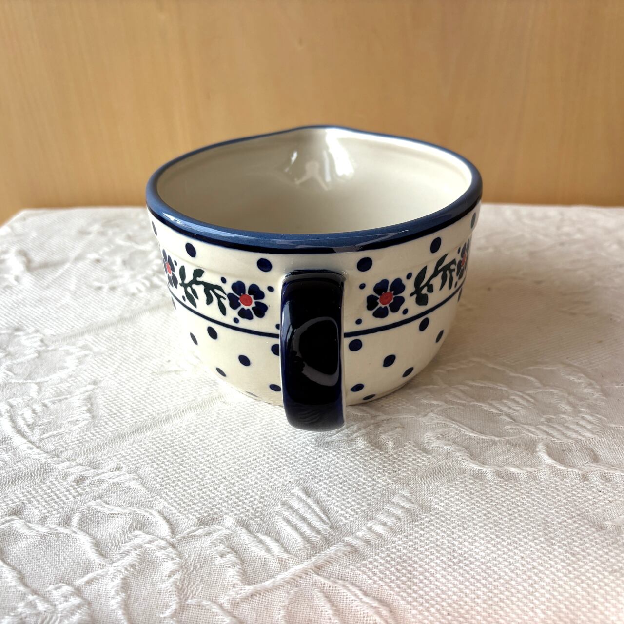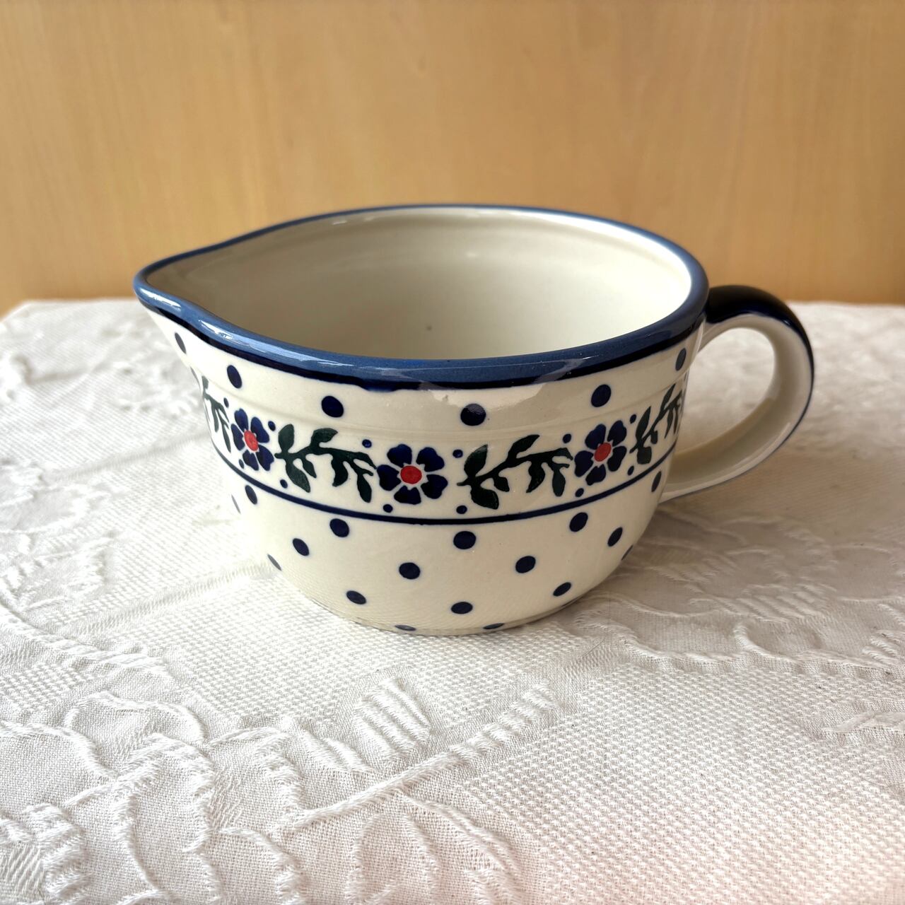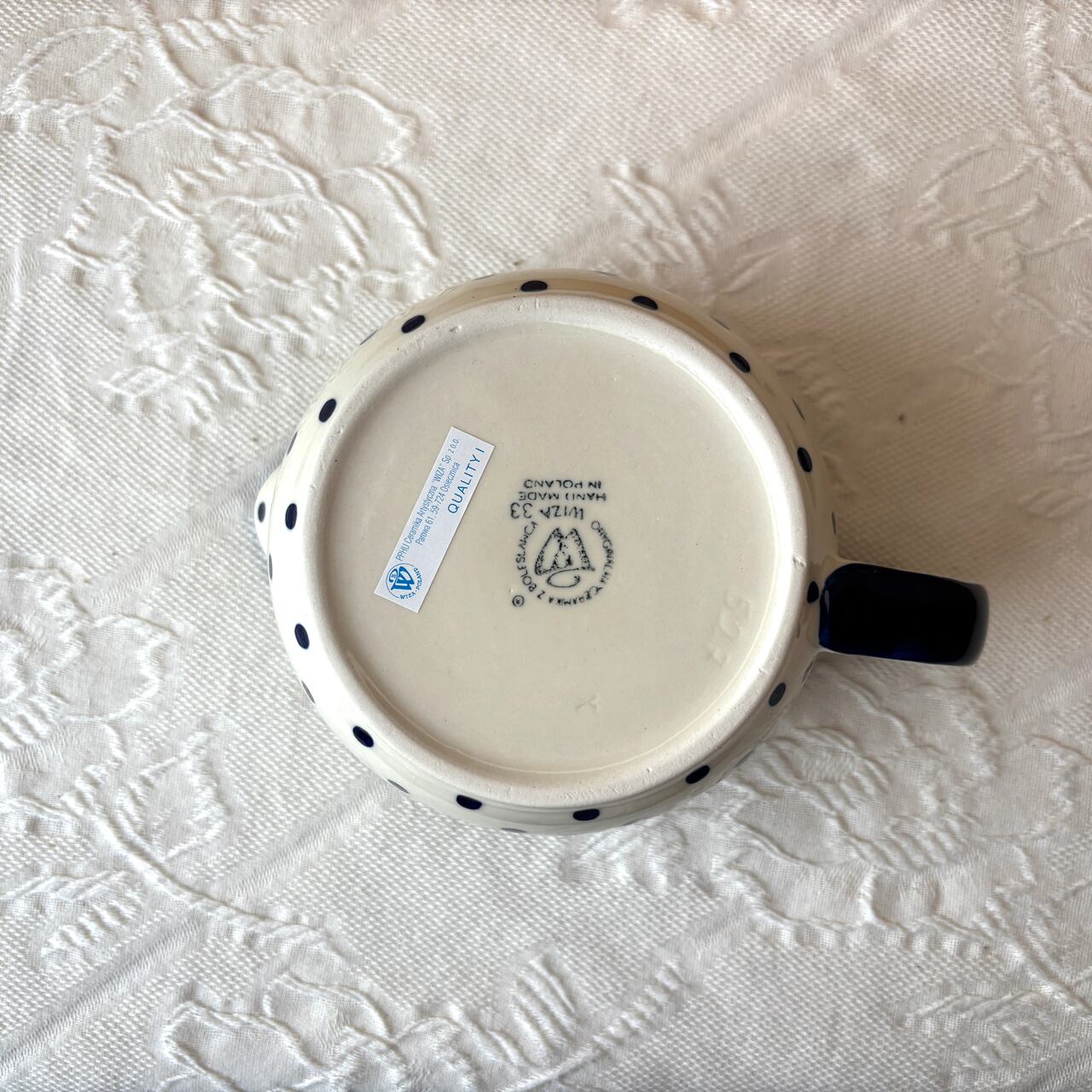 クリーム色の素地に、ドットと花があしらわれた可愛らしいデザイン。ポーランド食器らしい素朴な可愛らしさが出ている絵柄になっています。シンプルだからこそ飽きがこないデザインです。