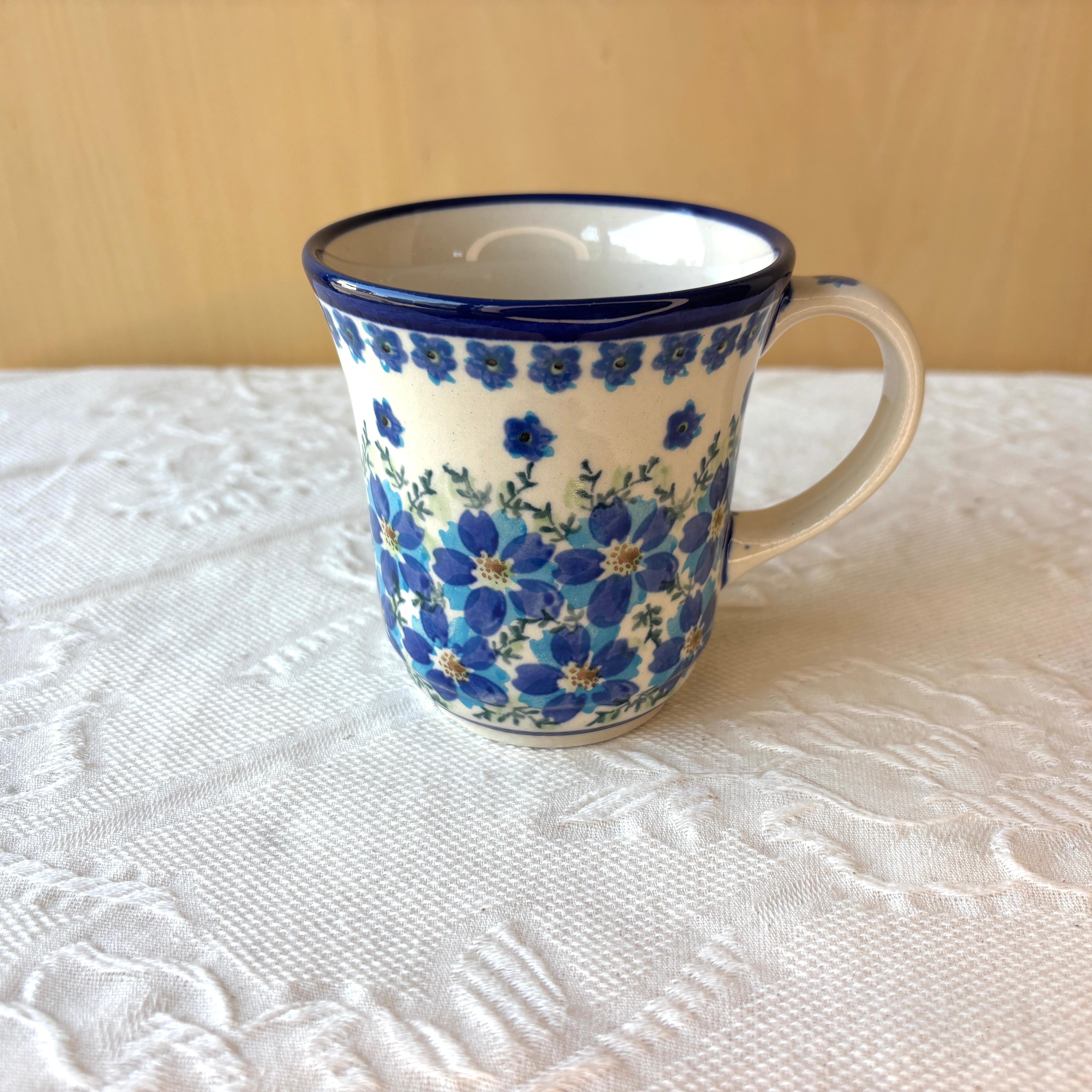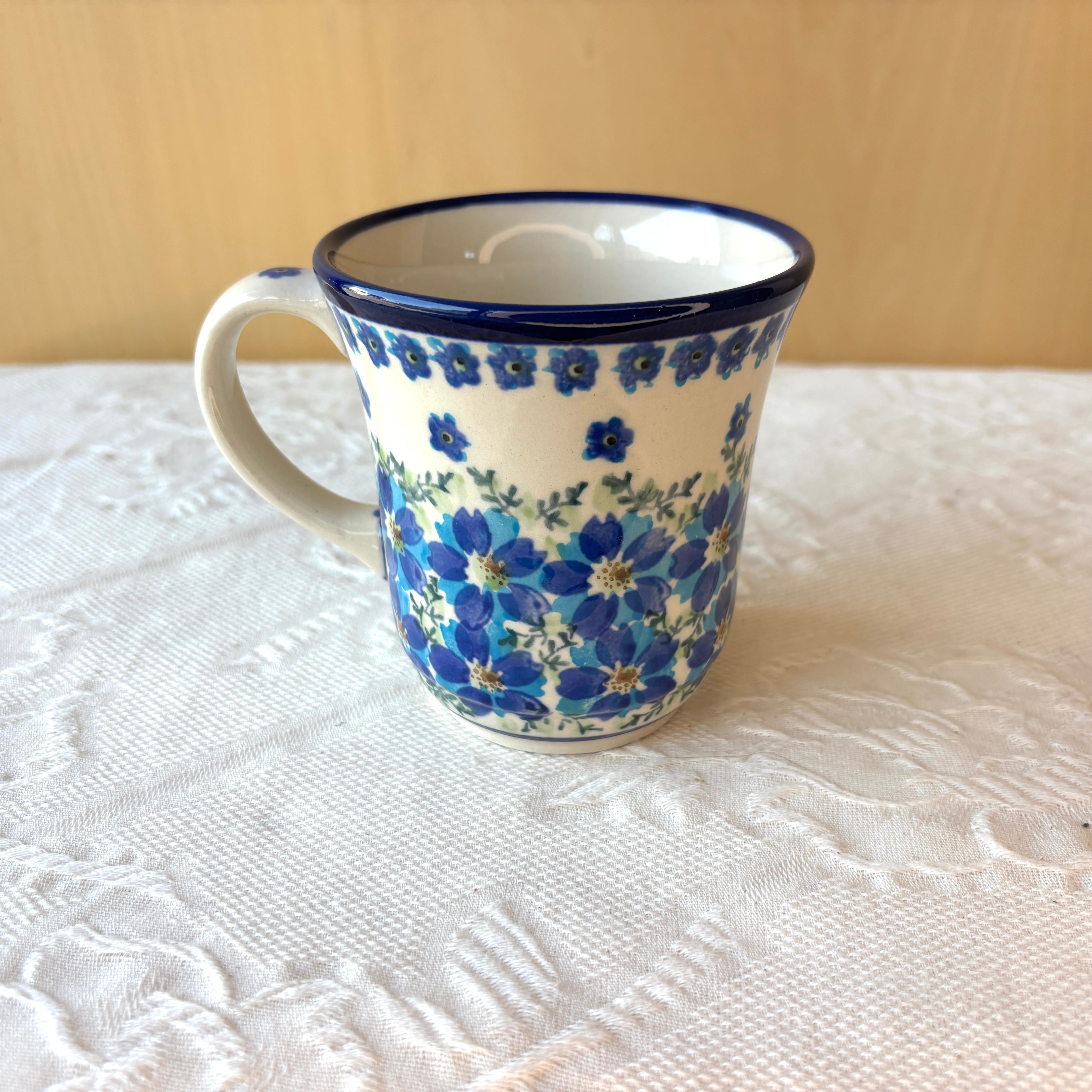 ポーランド食器は、昔ながらの手仕事で職人が作っているハンドメイド製品です。プリントとは違い、同じ絵柄でもひとつひとつに絵柄や表情の個体差がございます。絵柄の違い、色の濃度、スタンプの間隔の違いなど、手仕事ならではの個性も味としてお楽しみ下さい。