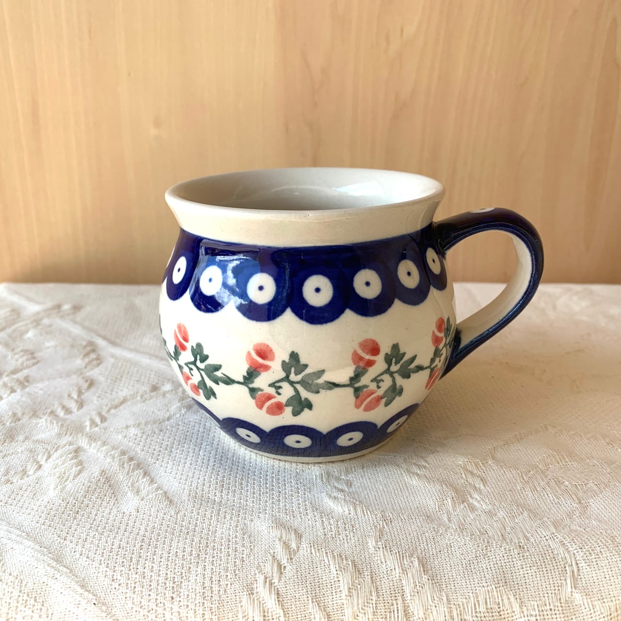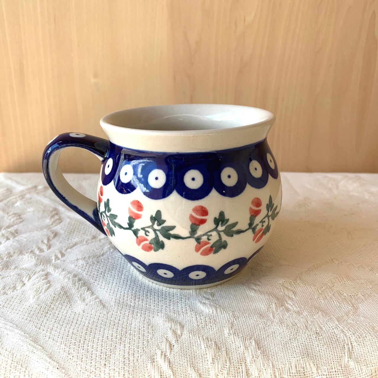 ポーランド食器は、昔ながらの手仕事で職人が作っているハンドメイド製品です。プリントとは違い、同じ絵柄でもひとつひとつに絵柄や表情の個体差がございます。絵柄の違い、色の濃度、スタンプの間隔の違いなど、手仕事ならではの個性も味としてお楽しみ下さい。