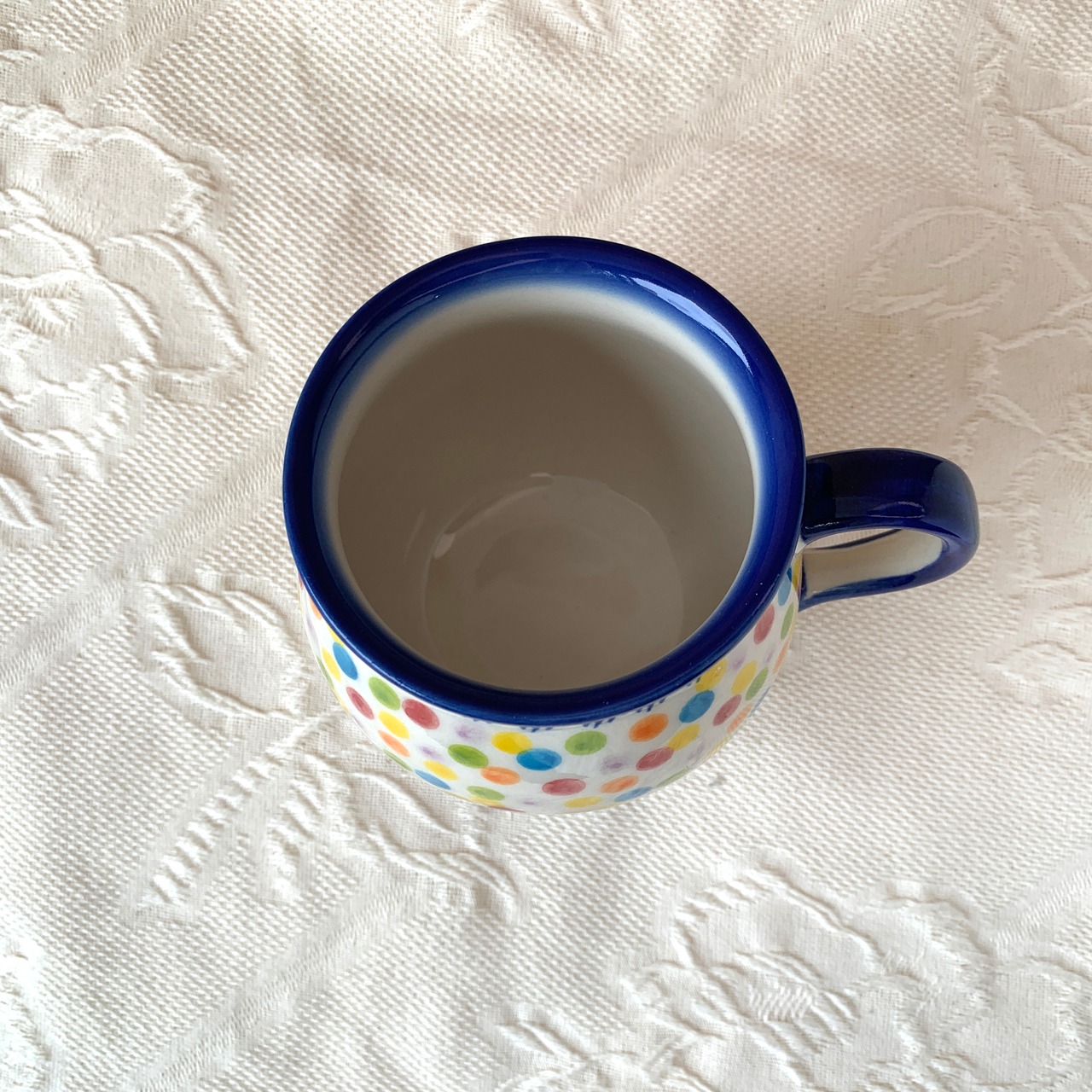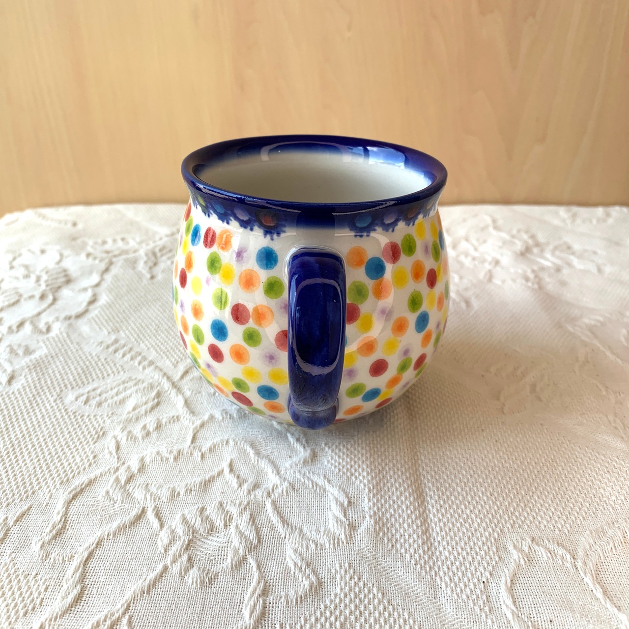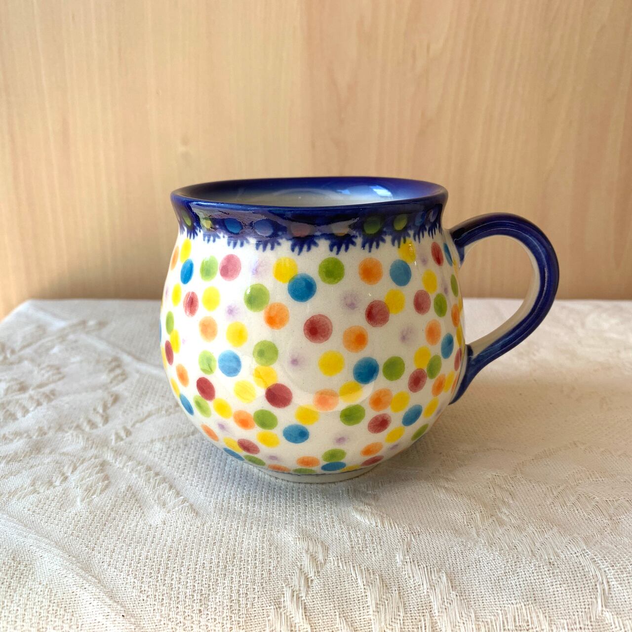 何種類もの色のドット柄になっているこちらの絵柄。ボンボンキャンディのようなポップで華やかでありながら、どこかポーリッシュポタリ―らしい素朴な愛らしさも兼ね備えた人気柄になっています。