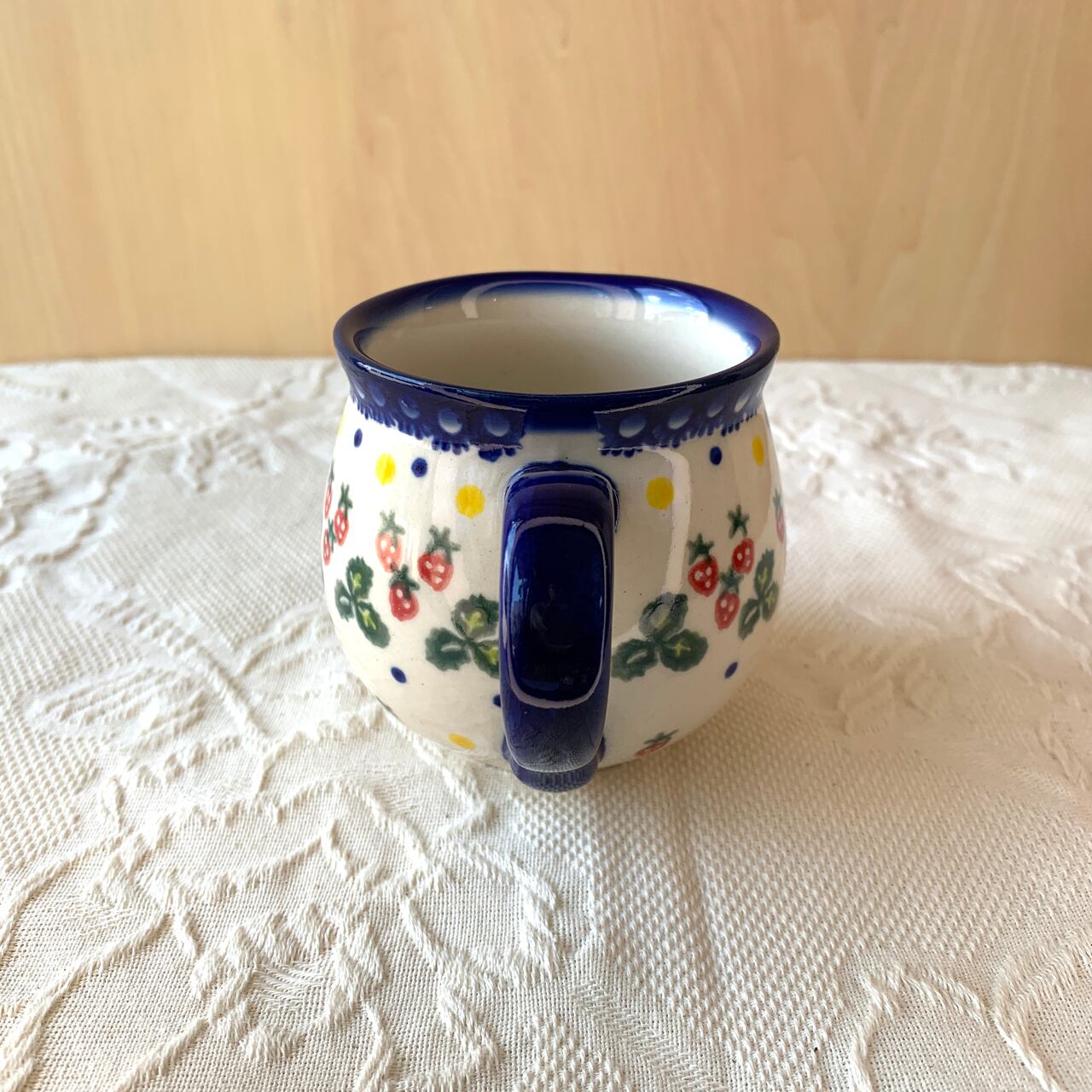 ポーランド食器は、昔ながらの手仕事で職人が作っているハンドメイド製品です。プリントとは違い、同じ絵柄でもひとつひとつに絵柄や表情の個体差がございます。絵柄の違い、色の濃度、スタンプの間隔の違いなど、手仕事ならではの個性も味としてお楽しみ下さい。