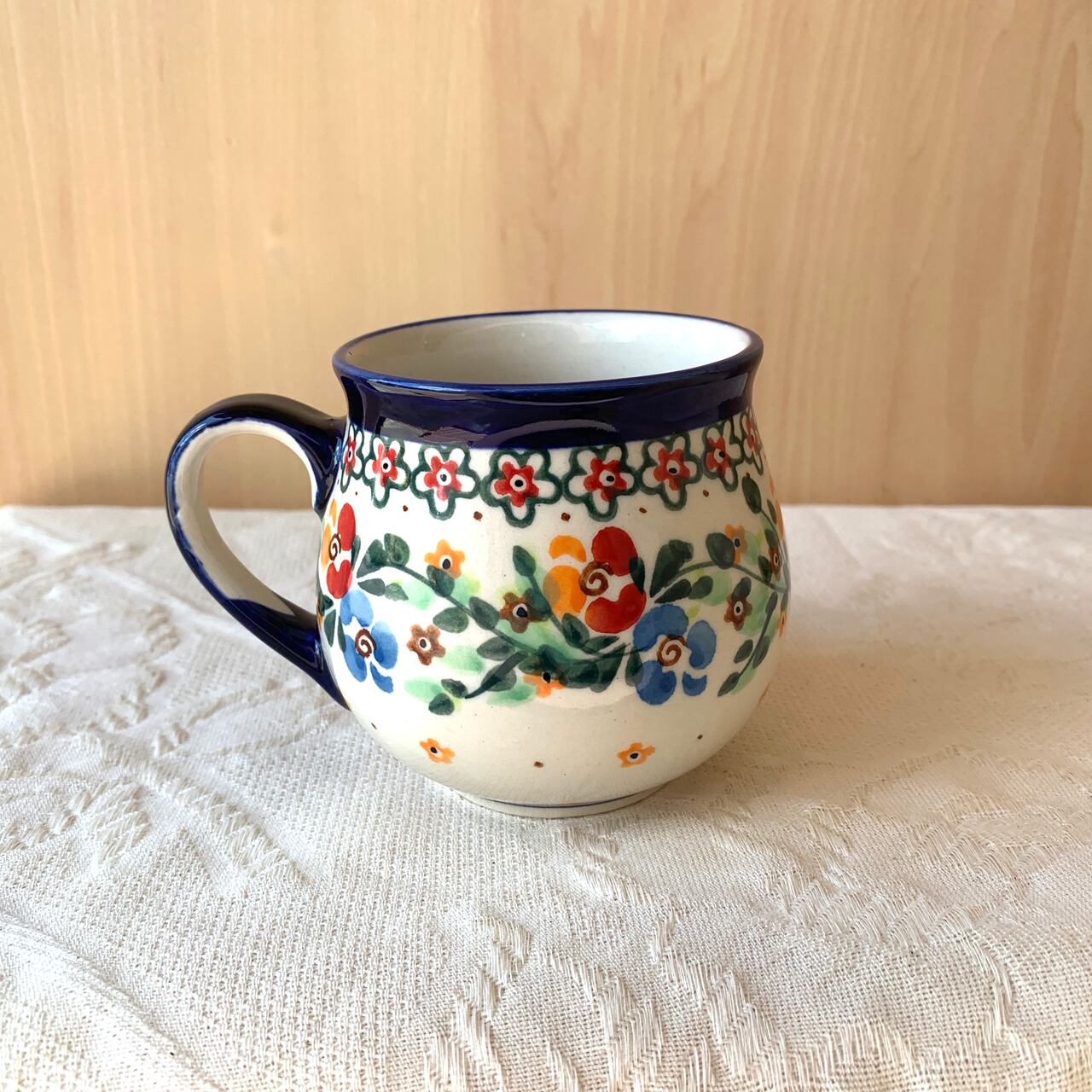 ぷっくりとした両手で包み込める柔らかい形が特徴のポーリッシュマグ。毎日のちょっとしたお茶の時間にちょうど良サイズです。中央が広いこのフォルムは、中の飲み物が冷めにくいのも特徴です。オーブン、レンジOKなので、こちらのマグを直接オーブンやレンジに入れて、プリンなどデザートを作ることもできます。