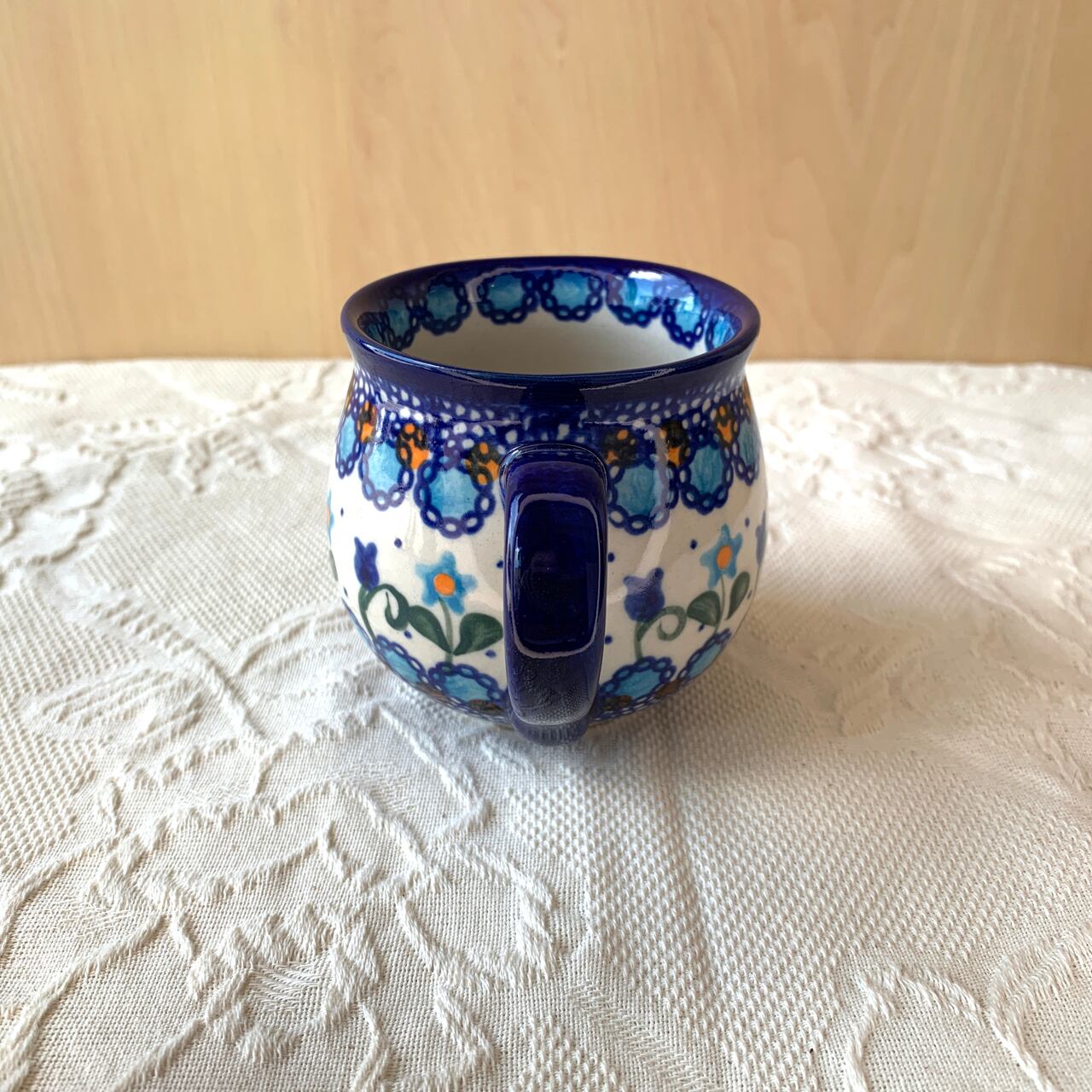 ポーランド食器は、昔ながらの手仕事で職人が作っているハンドメイド製品です。プリントとは違い、同じ絵柄でもひとつひとつに絵柄や表情の個体差がございます。絵柄の違い、色の濃度、スタンプの間隔の違いなど、手仕事ならではの個性も味としてお楽しみ下さい。