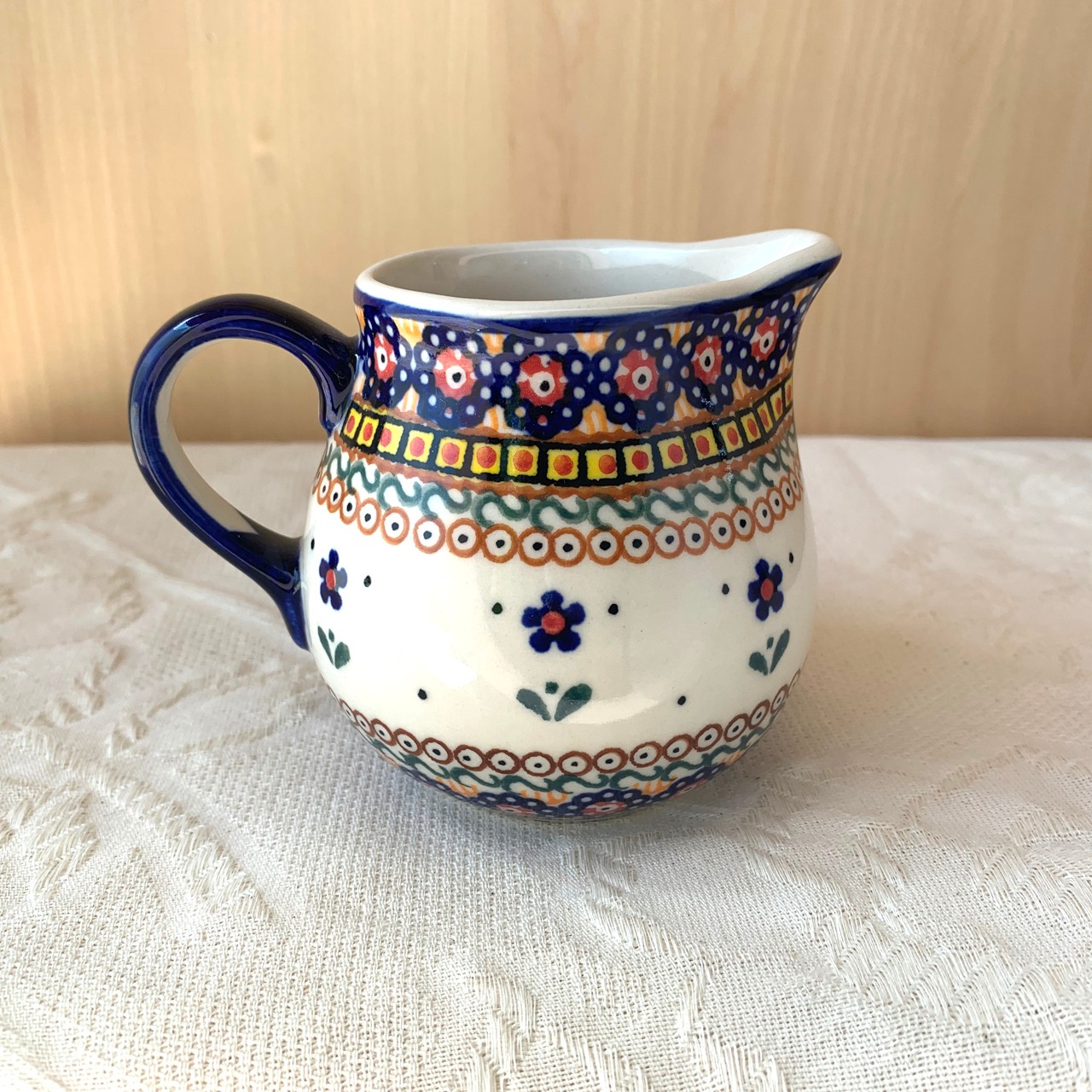 ポーランド食器は、昔ながらの手仕事で職人が作っているハンドメイド製品です。プリントとは違い、同じ絵柄でもひとつひとつに絵柄や表情の個体差がございます。絵柄の違い、色の濃度、スタンプの間隔の違いなど、手仕事ならではの個性も味としてお楽しみ下さい。