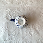 紺色を基調にカモミールが描かれた絵柄です。白いカモミールの真ん中にスタンプされている黄色もアクセントになっていて、とても愛らしいデザインになっています。ポーランド食器を知らない方でも、この柄は知っているという方も多いとても有名な柄です。