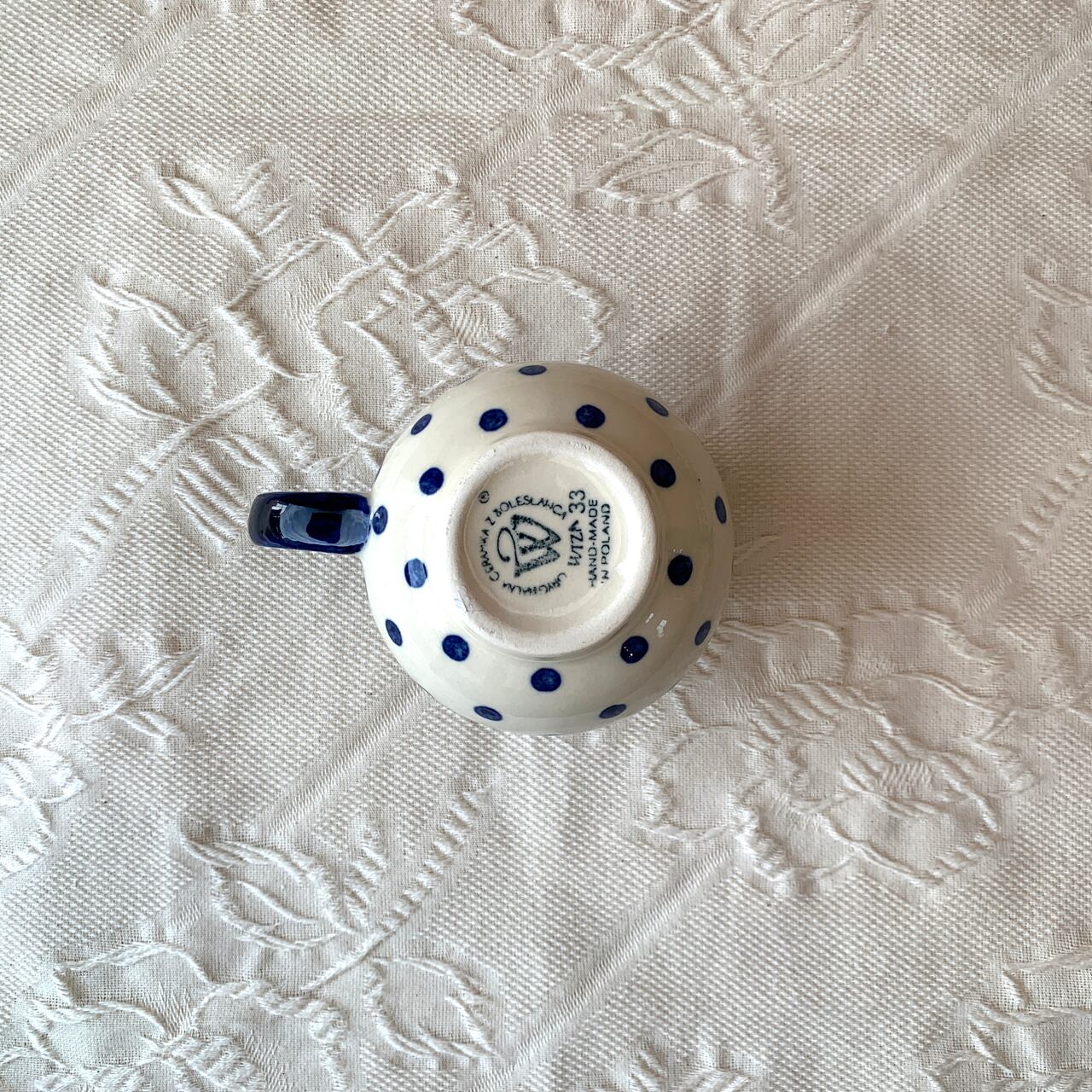 ポーランド食器は、昔ながらの手仕事で職人が作っているハンドメイド製品です。プリントとは違い、同じ絵柄でもひとつひとつに絵柄や表情の個体差がございます。絵柄の違い、色の濃度、スタンプの間隔の違いなど、手仕事ならではの個性も味としてお楽しみ下さい。
