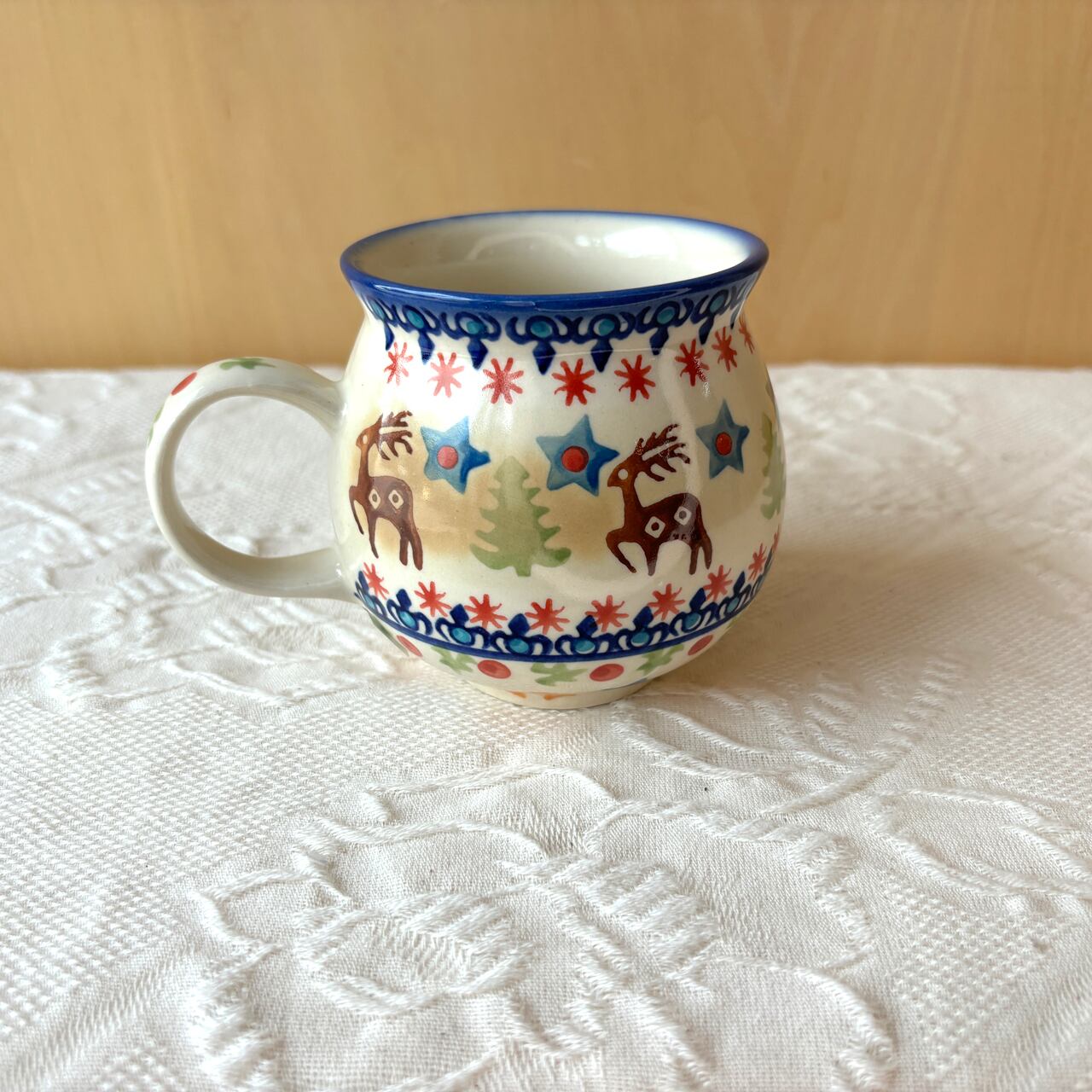 ぷっくりとした両手で包み込める柔らかい形が特徴のポーリッシュマグ。毎日のちょっとしたお茶の時間にちょうど良サイズです。中央が広いこのフォルムは、中の飲み物が冷めにくいのも特徴です。オーブン、レンジOKなので、こちらのマグを直接オーブンやレンジに入れて、プリンなどデザートを作ることもできます。