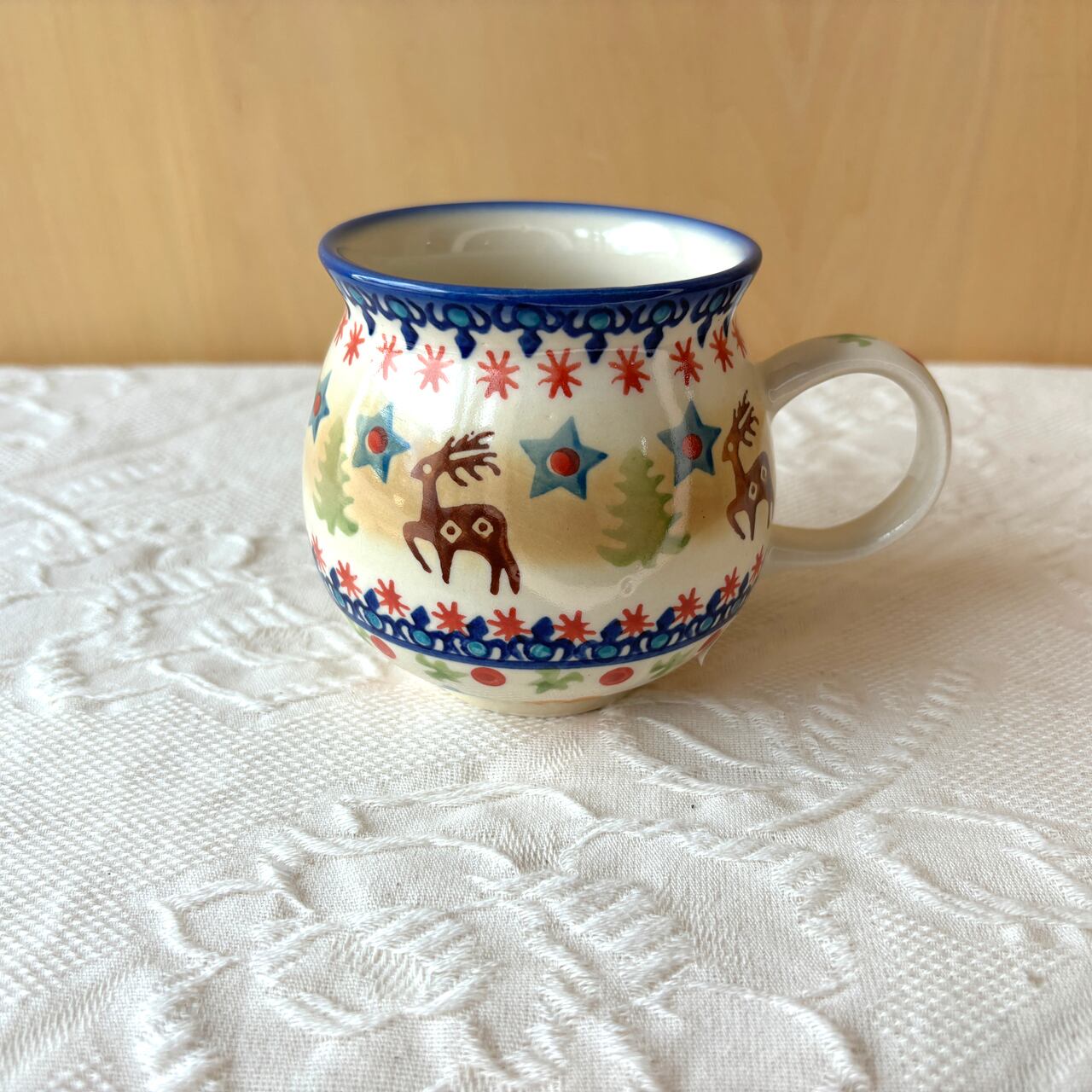 ポーランド食器は、昔ながらの手仕事で職人が作っているハンドメイド製品です。プリントとは違い、同じ絵柄でもひとつひとつに絵柄や表情の個体差がございます。絵柄の違い、色の濃度、スタンプの間隔の違いなど、手仕事ならではの個性も味としてお楽しみ下さい。