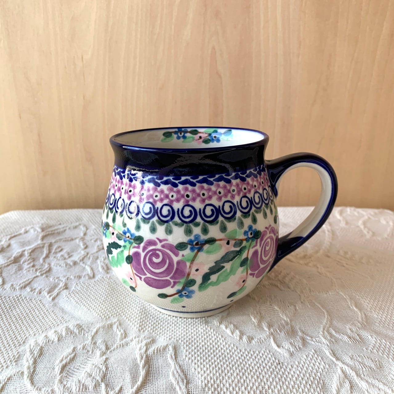 ぷっくりとした両手で包み込める柔らかい形が特徴のポーリッシュマグ。たっぷり300CC飲める大サイズです。中央が広いこのフォルムは、中の飲み物が冷めにくいのも特徴です。オーブン、レンジOKなので、こちらのマグを直接オーブンやレンジに入れて、プリンなどデザートを作ることもできます。