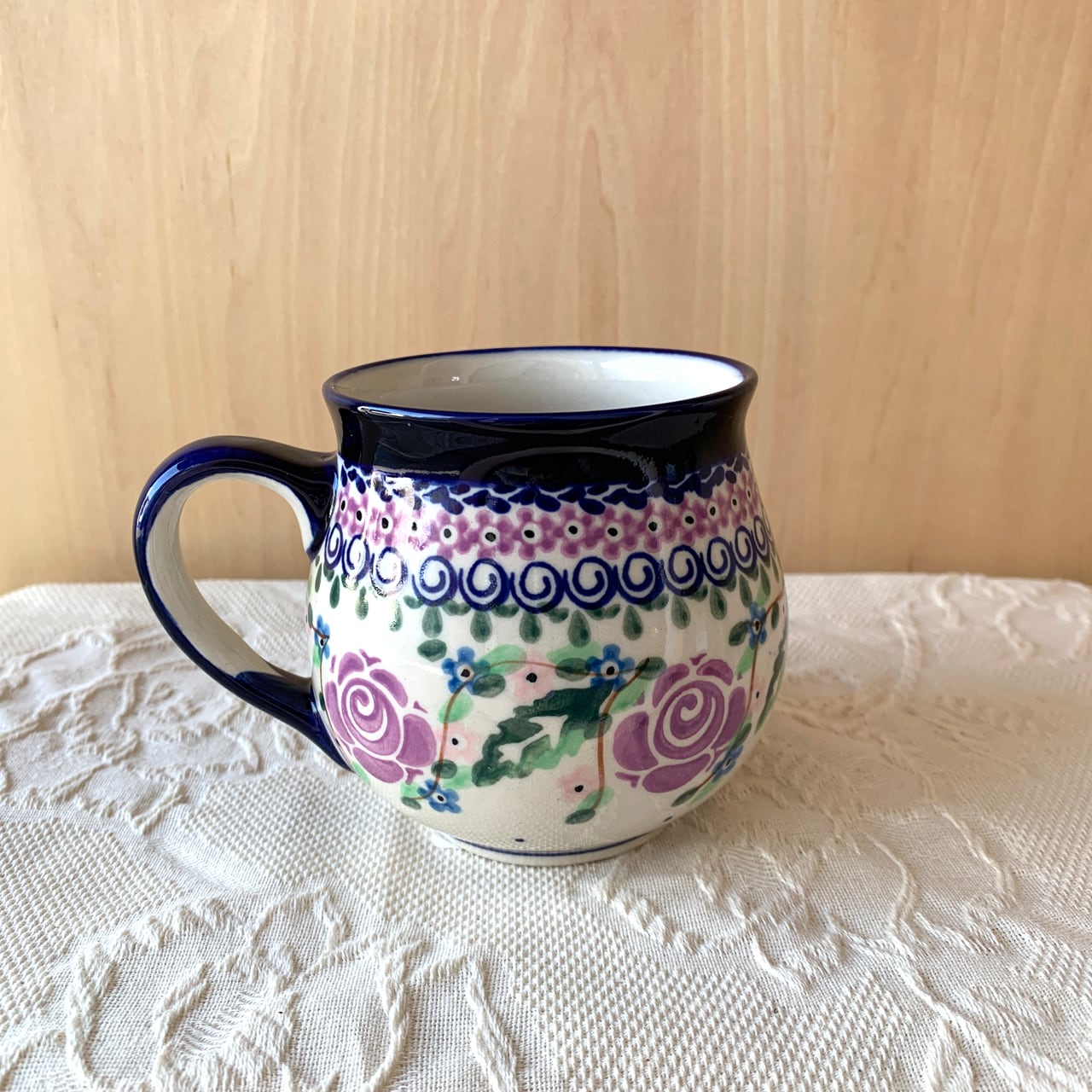 ポーランド食器は、昔ながらの手仕事で職人が作っているハンドメイド製品です。プリントとは違い、同じ絵柄でもひとつひとつに絵柄や表情の個体差がございます。絵柄の違い、色の濃度、スタンプの間隔の違いなど、手仕事ならではの個性も味としてお楽しみ下さい。