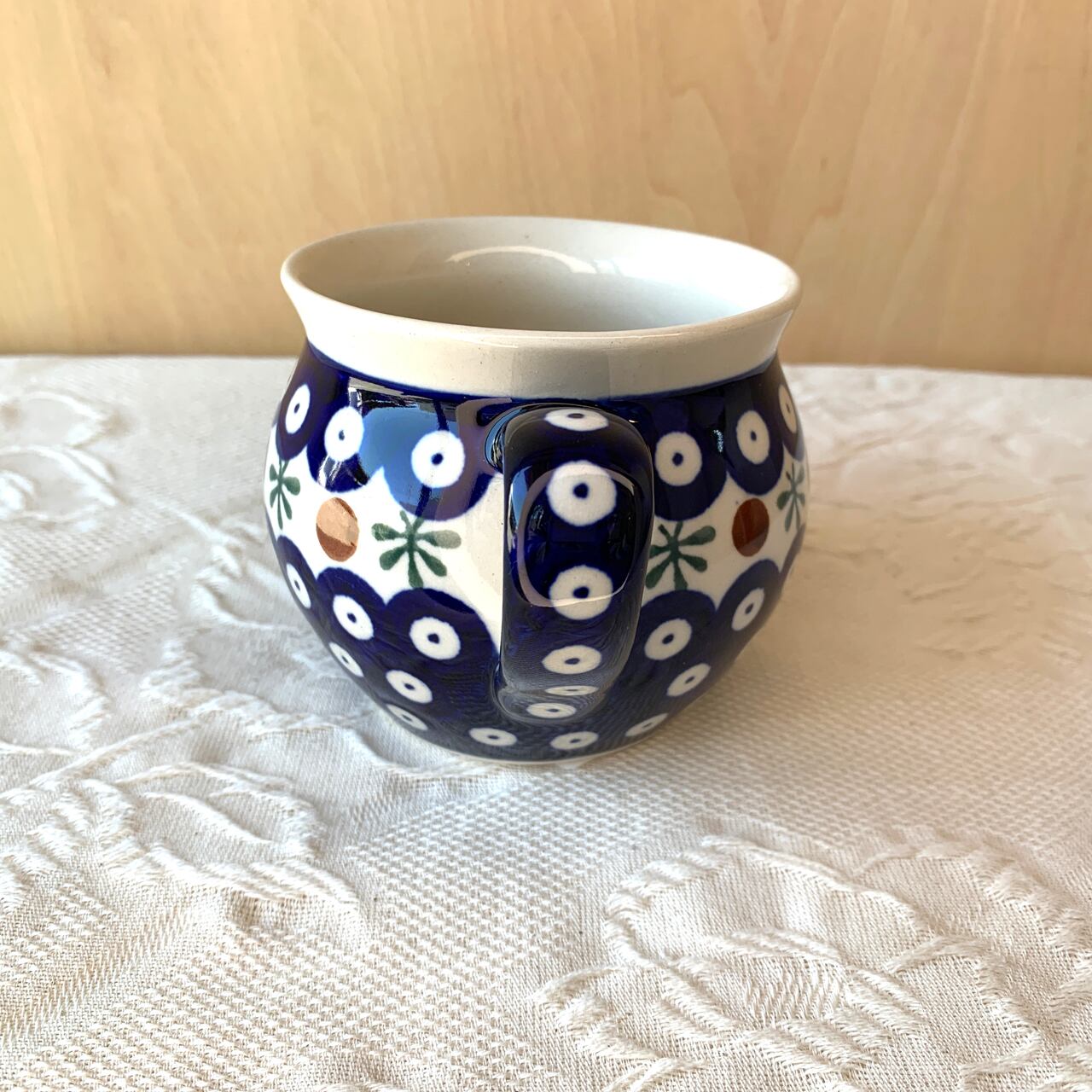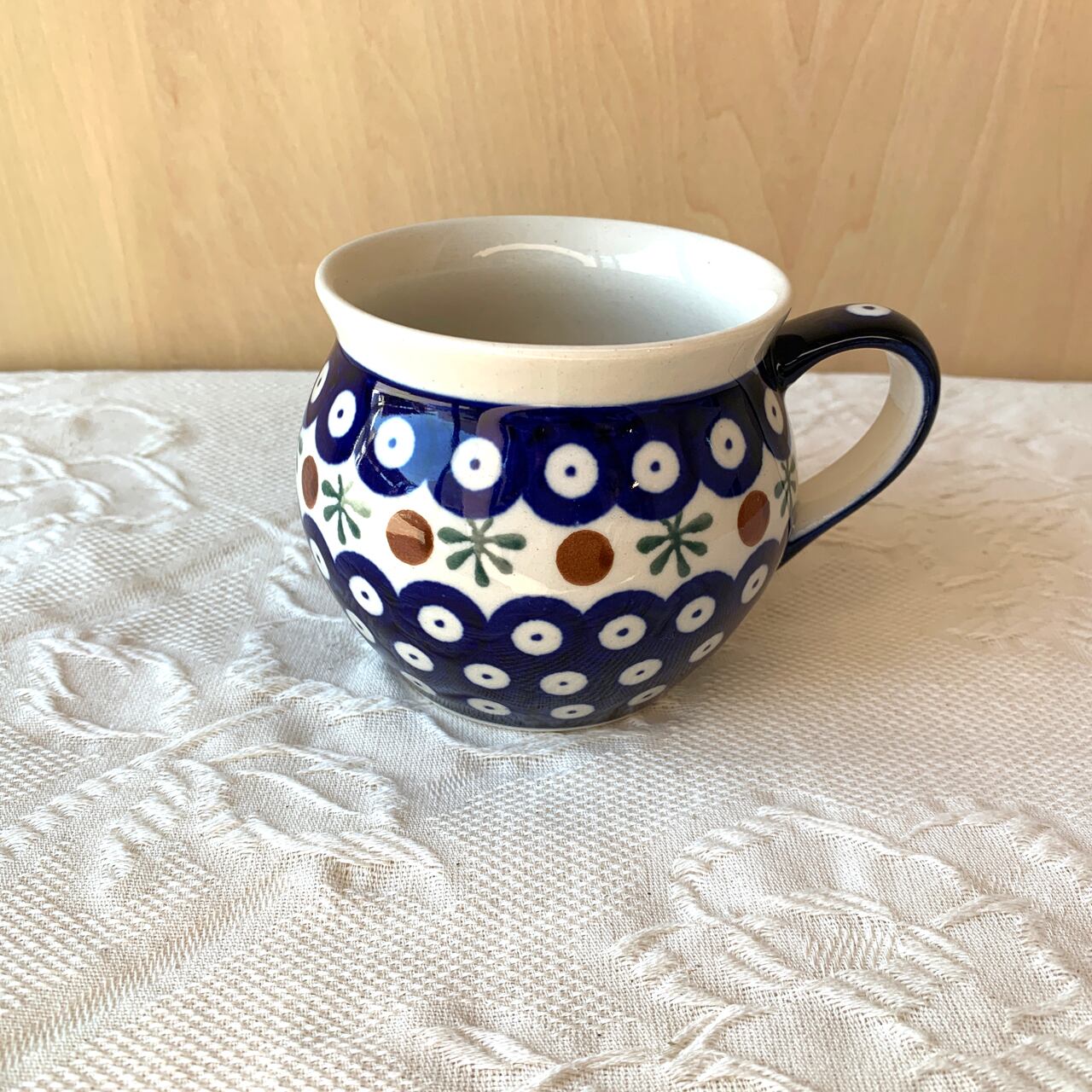 ポーランド食器は、昔ながらの手仕事で職人が作っているハンドメイド製品です。プリントとは違い、同じ絵柄でもひとつひとつに絵柄や表情の個体差がございます。絵柄の違い、色の濃度、スタンプの間隔の違いなど、手仕事ならではの個性も味としてお楽しみ下さい。