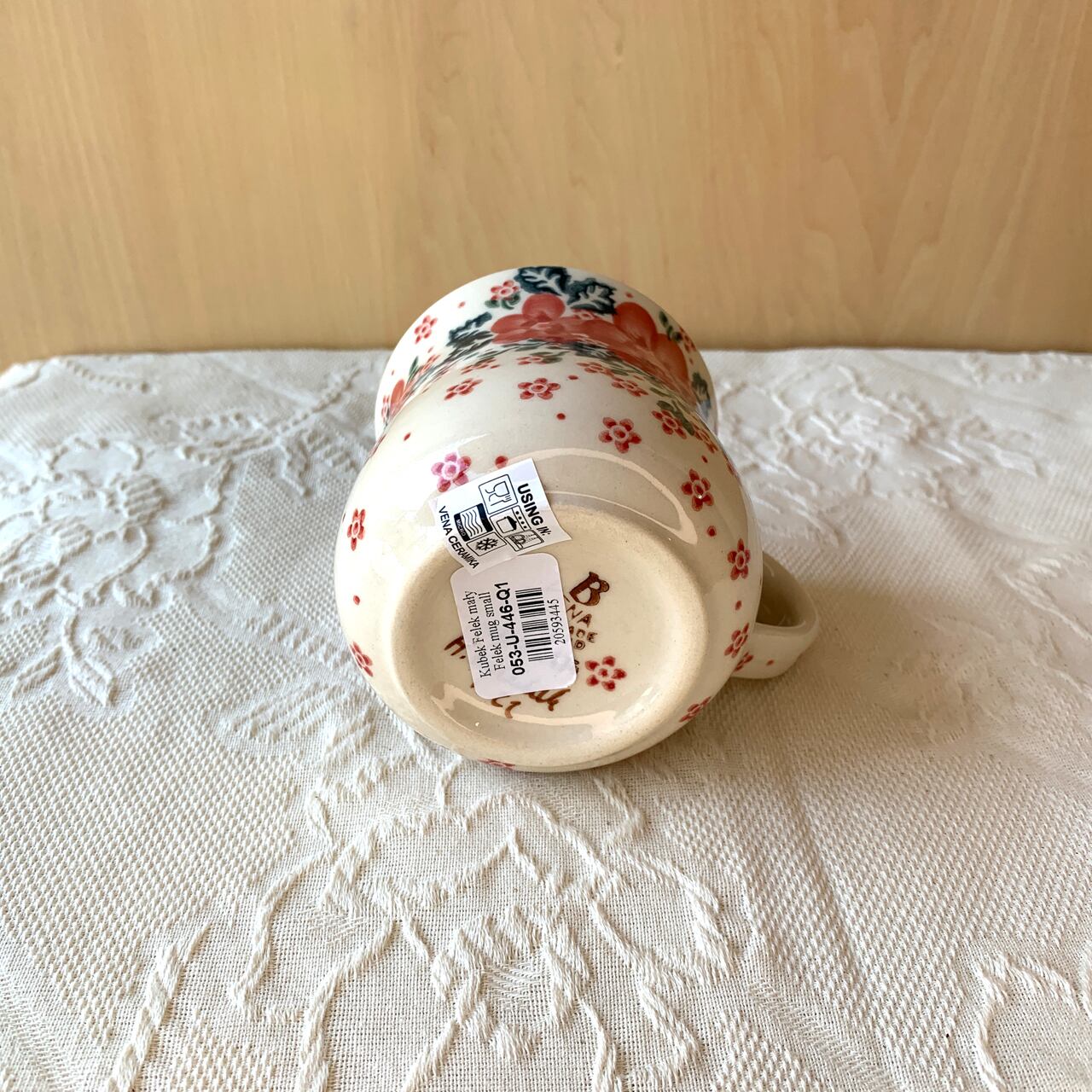 ポーランド食器は、昔ながらの手仕事で職人が作っているハンドメイド製品です。プリントとは違い、同じ絵柄でもひとつひとつに絵柄や表情の個体差がございます。絵柄の違い、色の濃度、スタンプの間隔の違いなど、手仕事ならではの個性も味としてお楽しみ下さい。