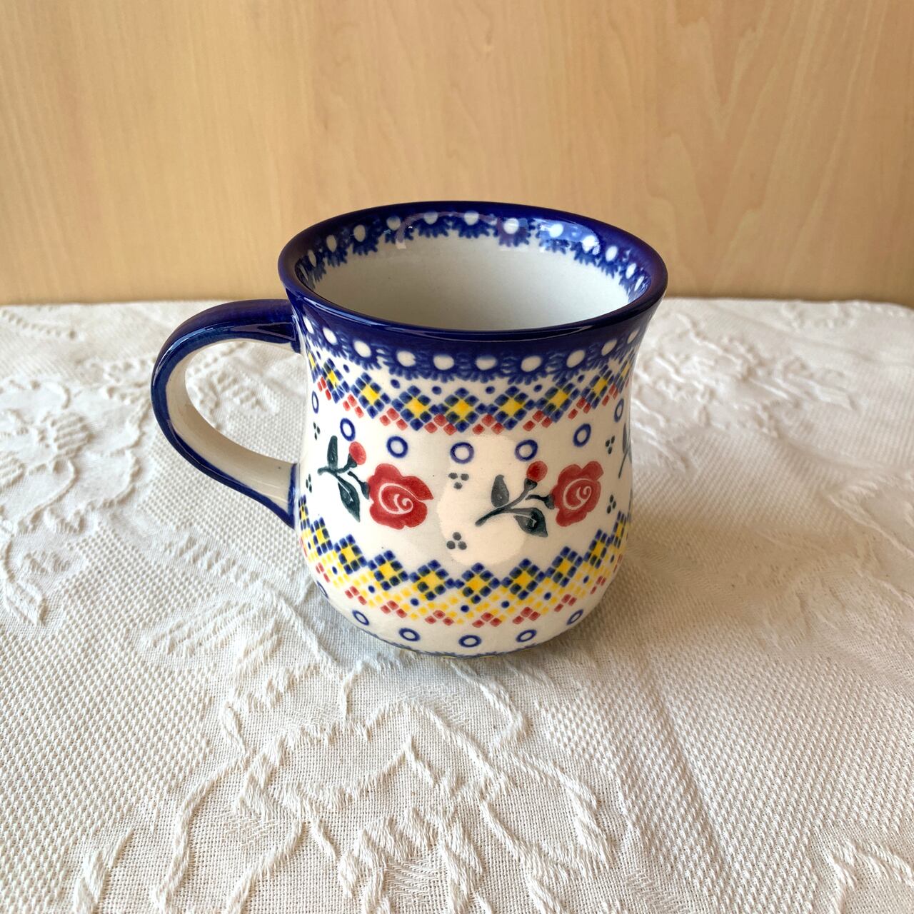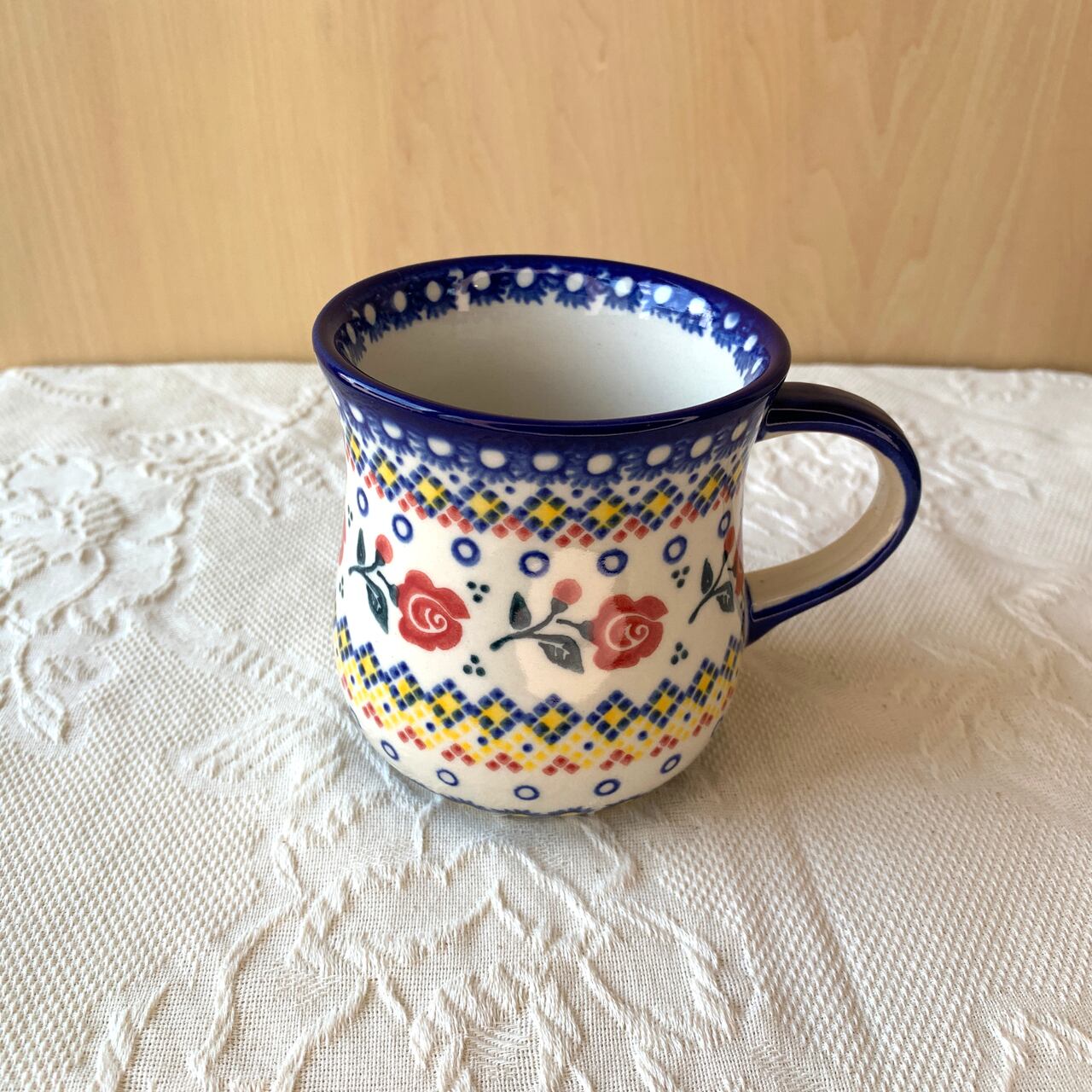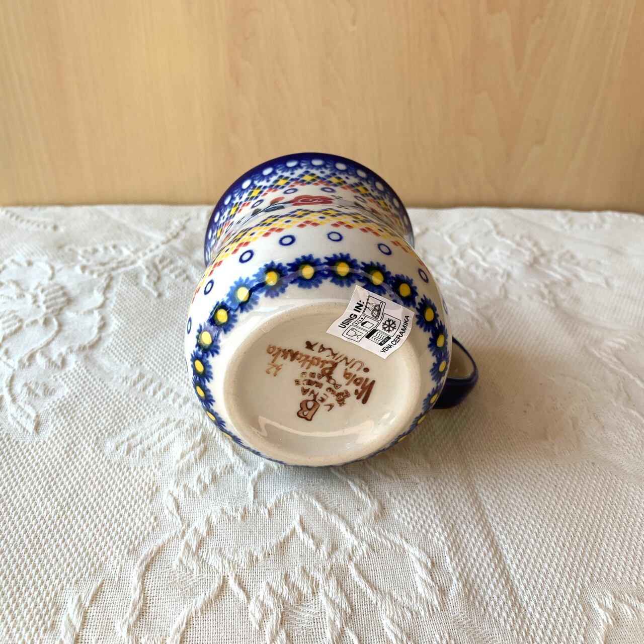 ポーランド食器は、昔ながらの手仕事で職人が作っているハンドメイド製品です。プリントとは違い、同じ絵柄でもひとつひとつに絵柄や表情の個体差がございます。絵柄の違い、色の濃度、スタンプの間隔の違いなど、手仕事ならではの個性も味としてお楽しみ下さい。