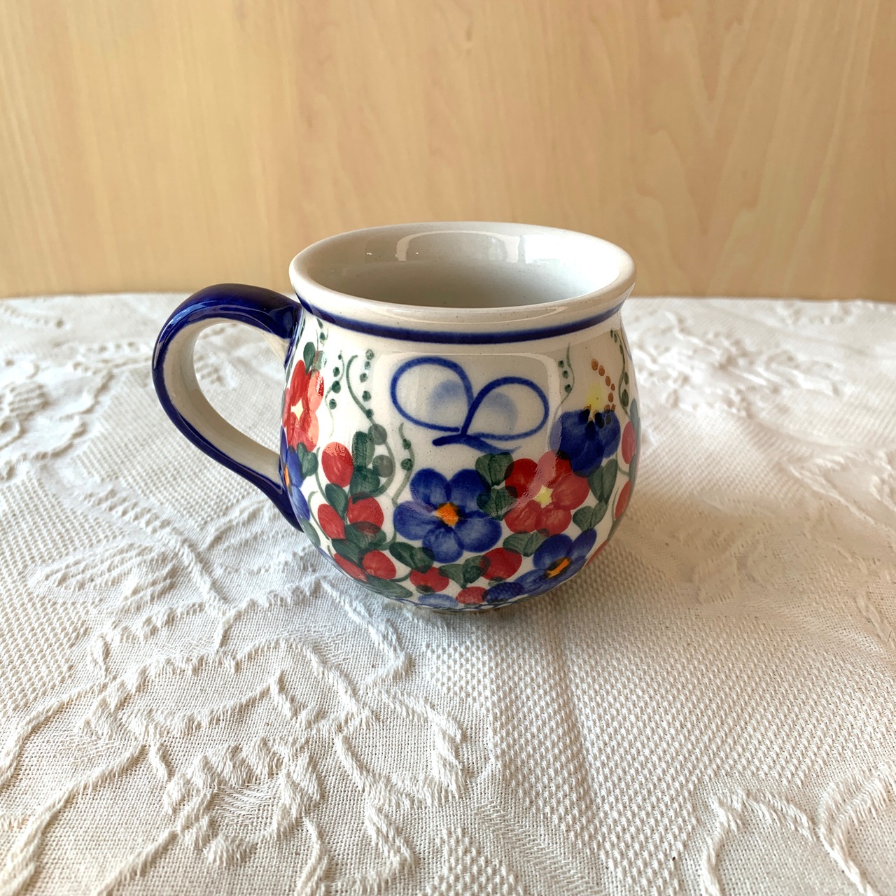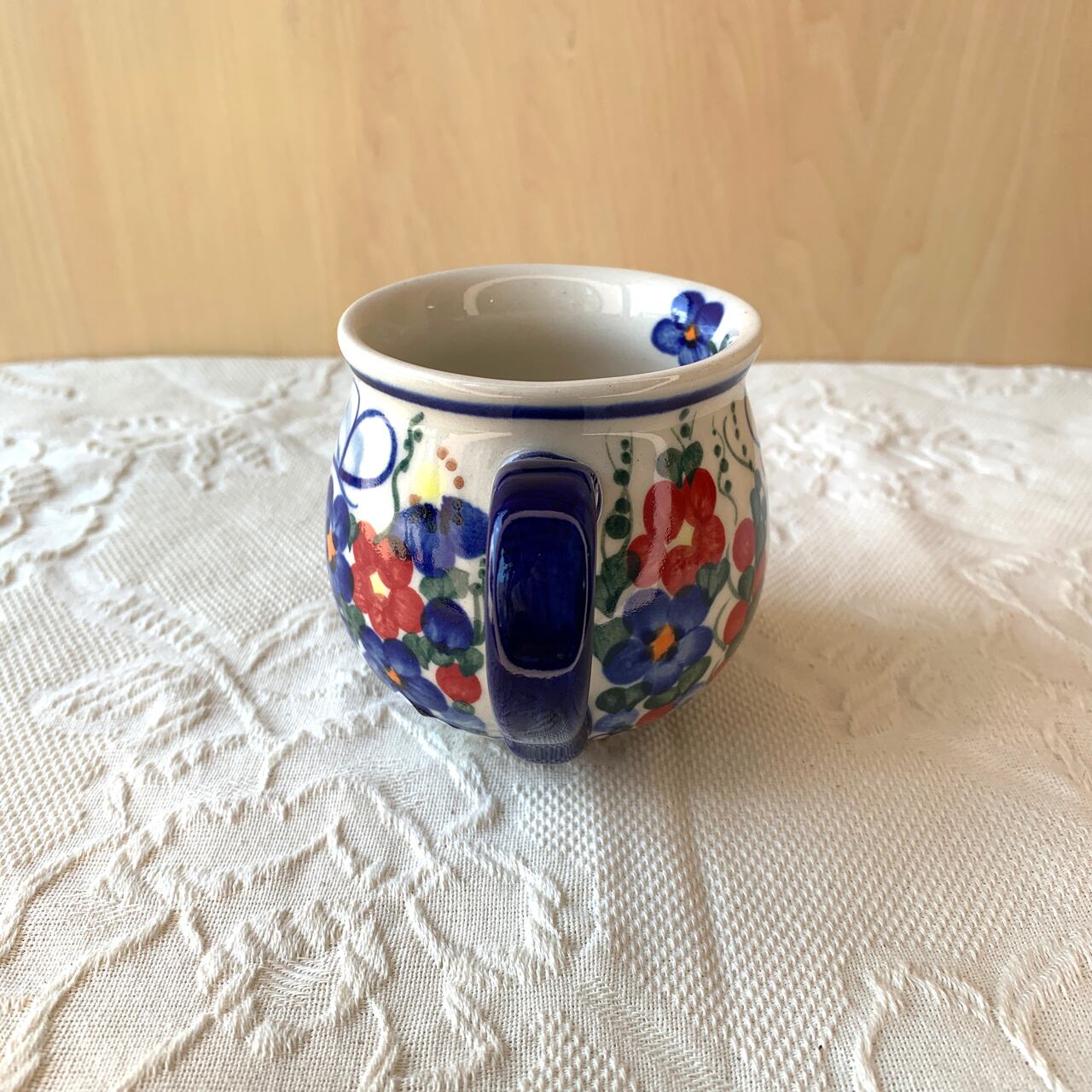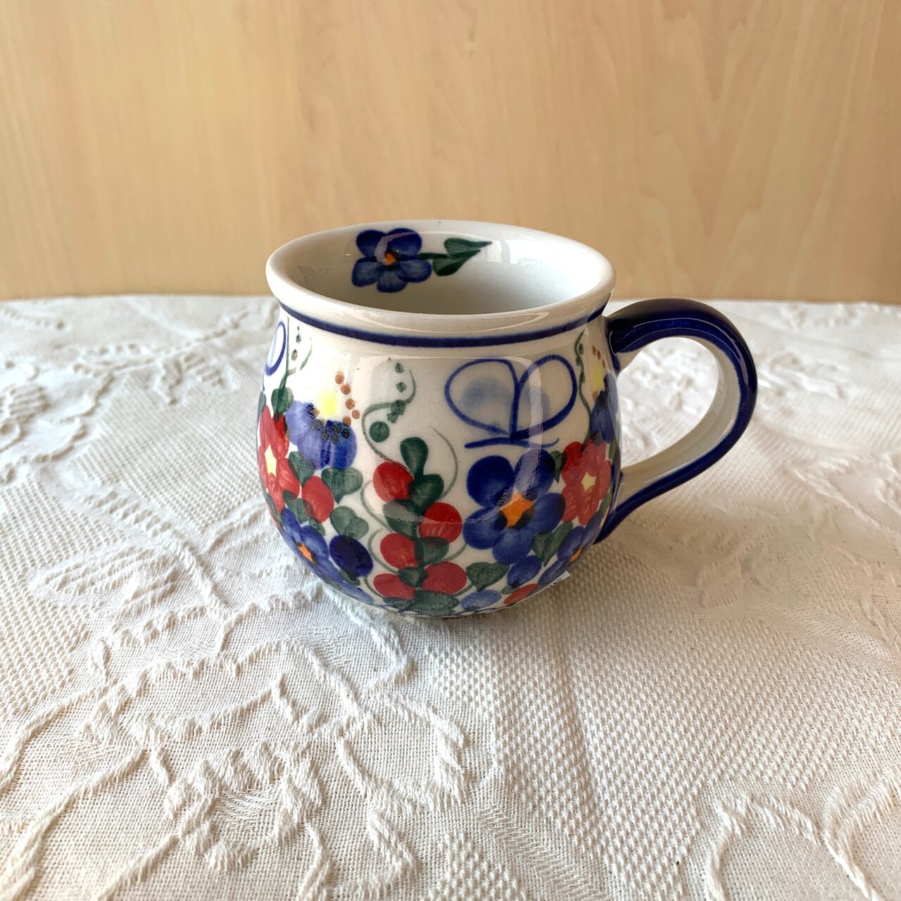 ポーランド食器は、昔ながらの手仕事で職人が作っているハンドメイド製品です。プリントとは違い、同じ絵柄でもひとつひとつに絵柄や表情の個体差がございます。絵柄の違い、色の濃度、スタンプの間隔の違いなど、手仕事ならではの個性も味としてお楽しみ下さい。