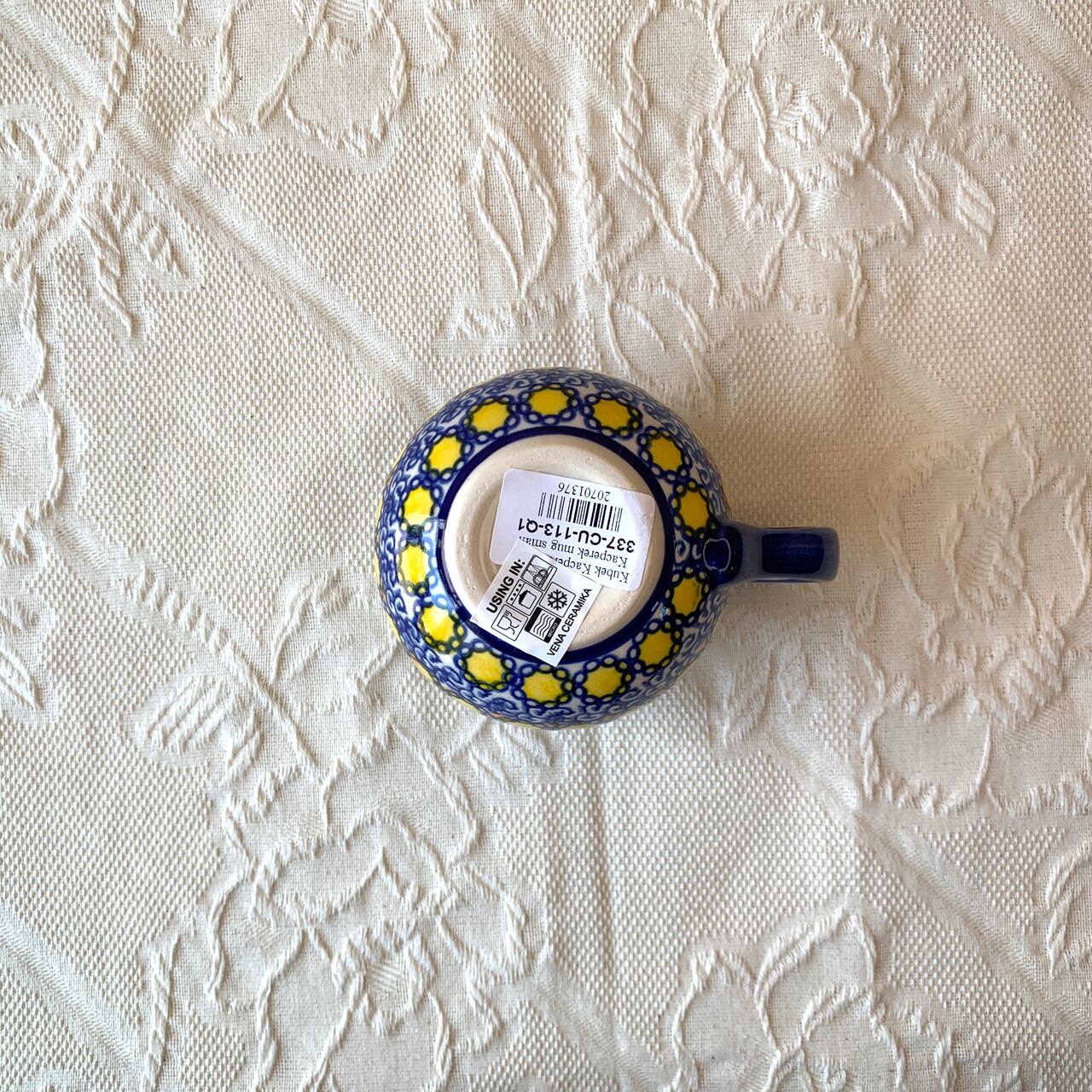 ポーランド食器は、昔ながらの手仕事で職人が作っているハンドメイド製品です。プリントとは違い、同じ絵柄でもひとつひとつに絵柄や表情の個体差がございます。絵柄の違い、色の濃度、スタンプの間隔の違いなど、手仕事ならではの個性も味としてお楽しみ下さい。