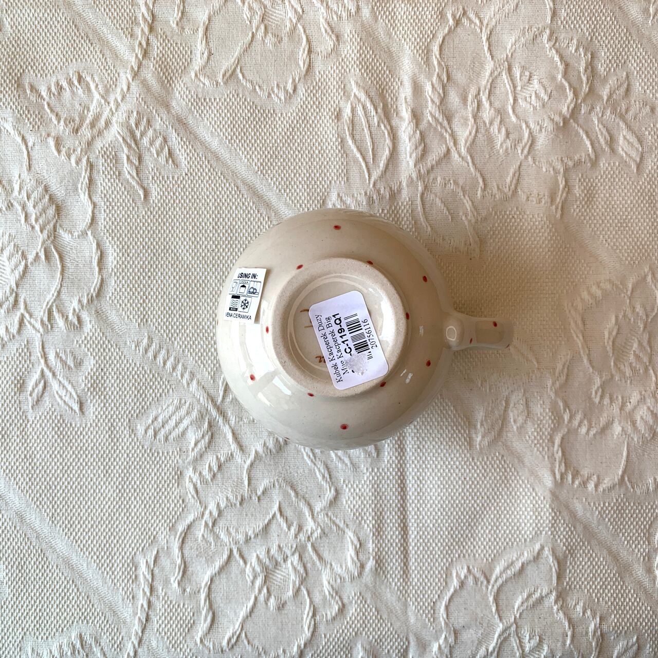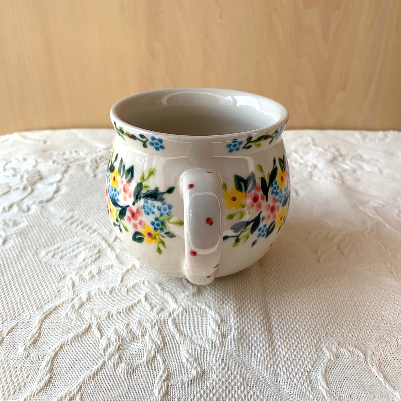 ポーランド食器は、昔ながらの手仕事で職人が作っているハンドメイド製品です。プリントとは違い、同じ絵柄でもひとつひとつに絵柄や表情の個体差がございます。絵柄の違い、色の濃度、スタンプの間隔の違いなど、手仕事ならではの個性も味としてお楽しみ下さい。