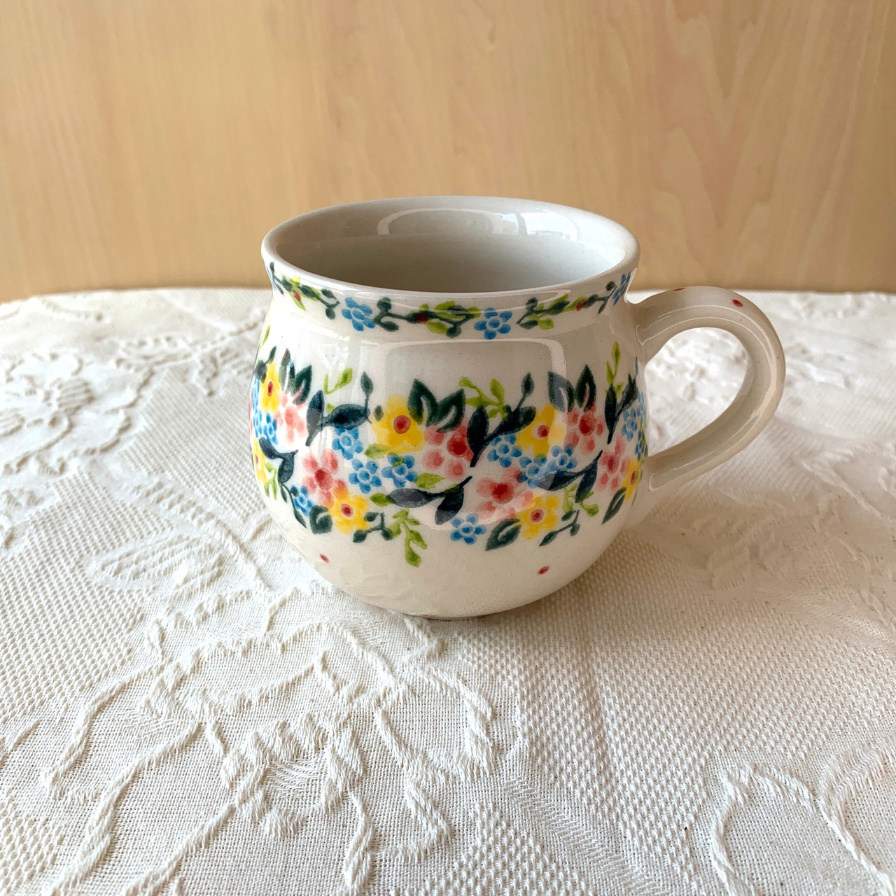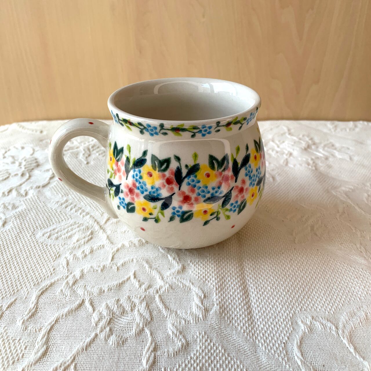 ぷっくりとした両手で包み込める柔らかい形が特徴のポーリッシュマグ。たっぷり300CC飲める大サイズです。中央が広いこのフォルムは、中の飲み物が冷めにくいのも特徴です。オーブン、レンジOKなので、こちらのマグを直接オーブンやレンジに入れて、プリンなどデザートを作ることもできます。