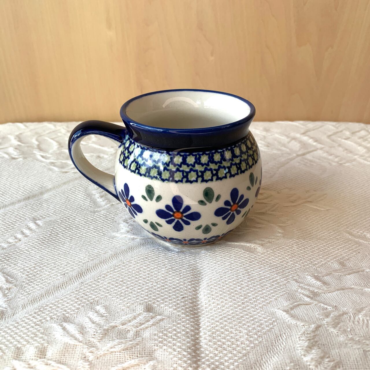 ポーランド食器は、昔ながらの手仕事で職人が作っているハンドメイド製品です。プリントとは違い、同じ絵柄でもひとつひとつに絵柄や表情の個体差がございます。絵柄の違い、色の濃度、スタンプの間隔の違いなど、手仕事ならではの個性も味としてお楽しみ下さい。