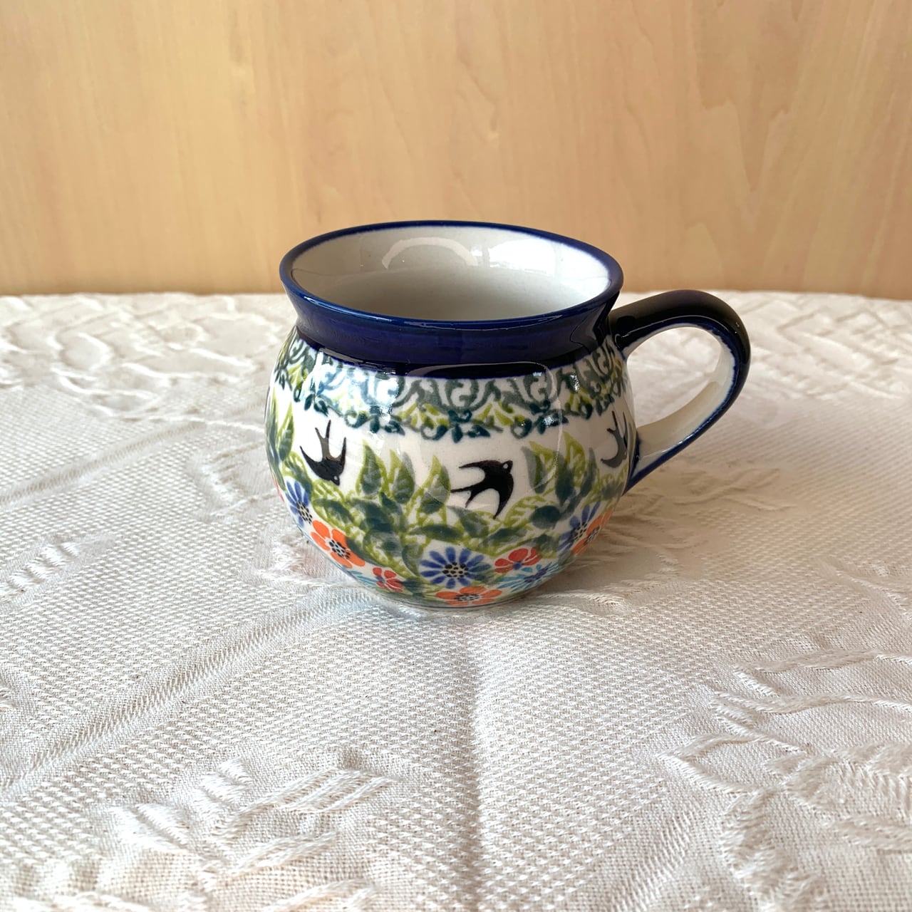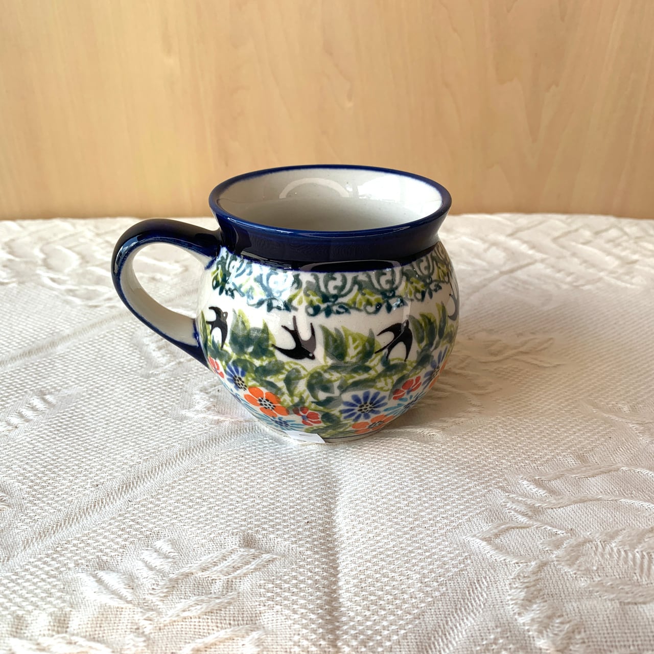 ポーランド食器は、昔ながらの手仕事で職人が作っているハンドメイド製品です。プリントとは違い、同じ絵柄でもひとつひとつに絵柄や表情の個体差がございます。絵柄の違い、色の濃度、スタンプの間隔の違いなど、手仕事ならではの個性も味としてお楽しみ下さい。