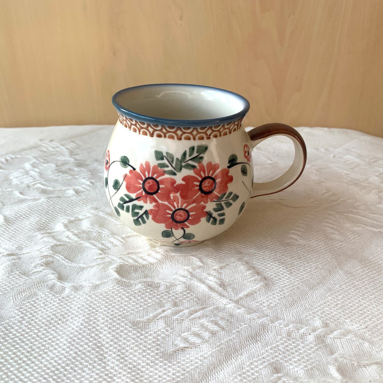 ぷっくりとした両手で包み込める柔らかい形が特徴のポーリッシュマグ。毎日のちょっとしたお茶の時間にちょうど良サイズです。中央が広いこのフォルムは、中の飲み物が冷めにくいのも特徴です。オーブン、レンジOKなので、こちらのマグを直接オーブンやレンジに入れて、プリンなどデザートを作ることもできます。