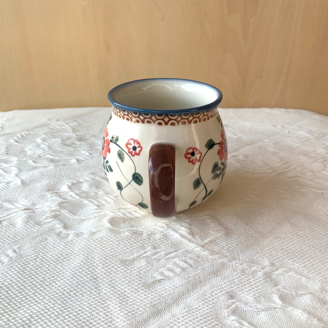ポーランド食器は、昔ながらの手仕事で職人が作っているハンドメイド製品です。プリントとは違い、同じ絵柄でもひとつひとつに絵柄や表情の個体差がございます。絵柄の違い、色の濃度、スタンプの間隔の違いなど、手仕事ならではの個性も味としてお楽しみ下さい。