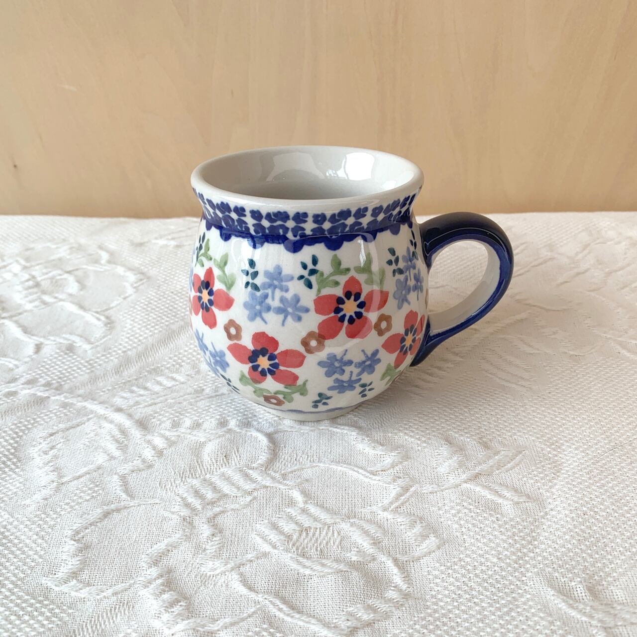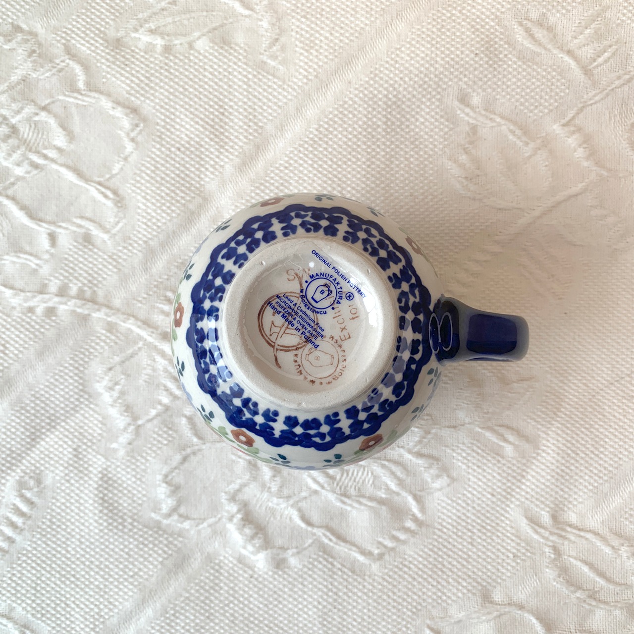 ポーランド食器は、昔ながらの手仕事で職人が作っているハンドメイド製品です。プリントとは違い、同じ絵柄でもひとつひとつに絵柄や表情の個体差がございます。絵柄の違い、色の濃度、スタンプの間隔の違いなど、手仕事ならではの個性も味としてお楽しみ下さい。